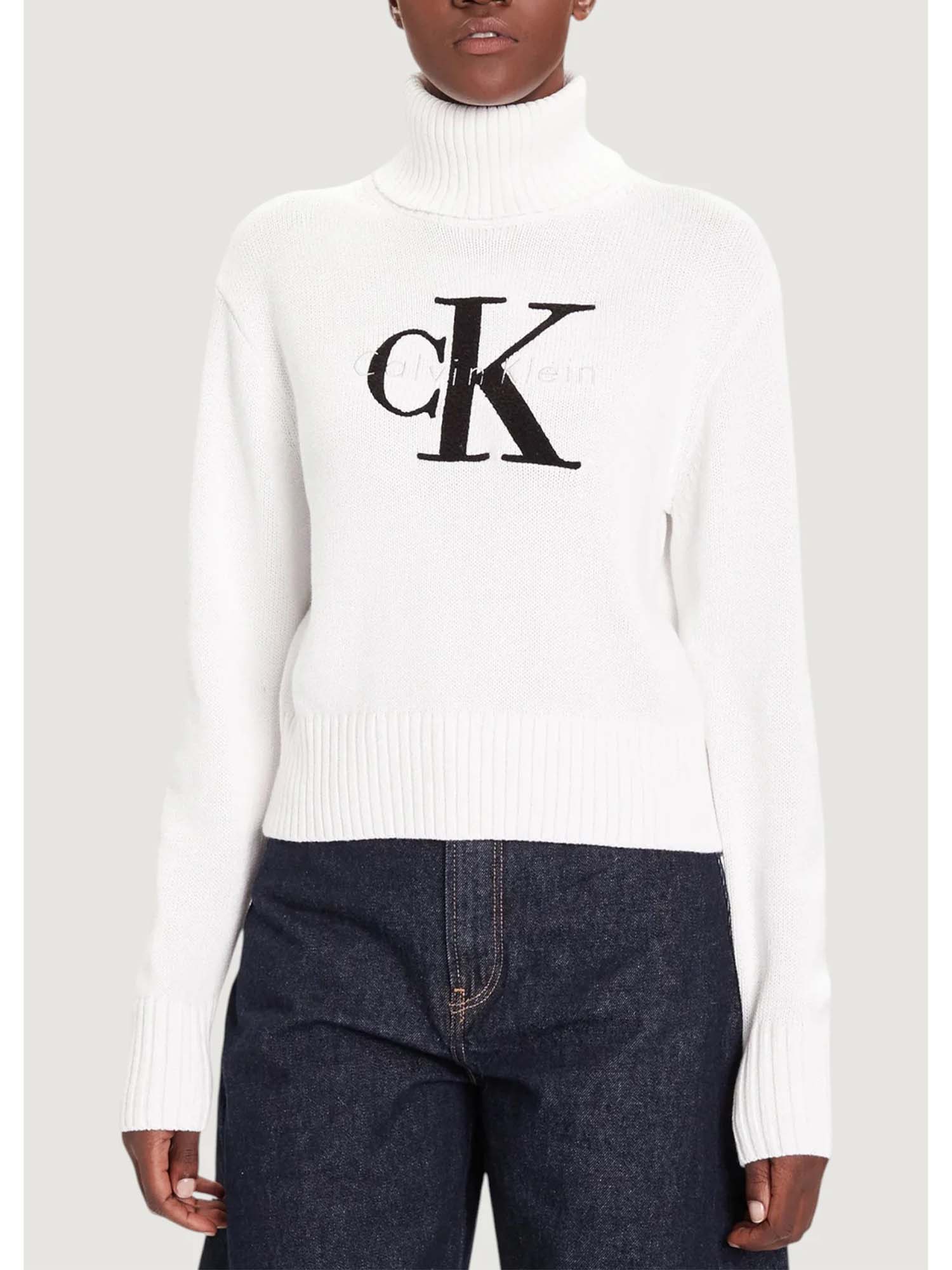 PULLOVER CON COLLO A LUPETTO CALVIN KLEIN JEANS DA DONNA BIANCO