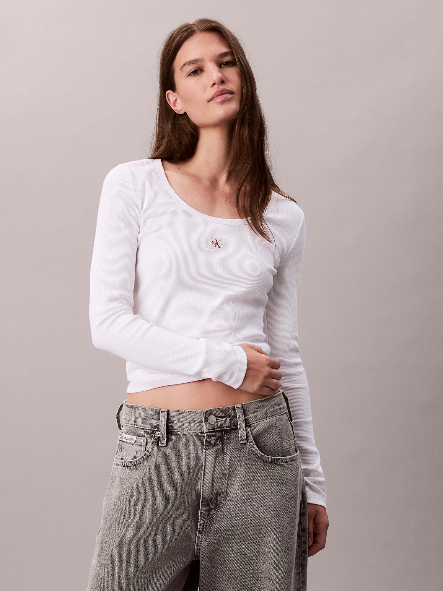 MAGLIA A MANICA LUNGA WOVEN CALVIN KLEIN JEANS DA DONNA BIANCO