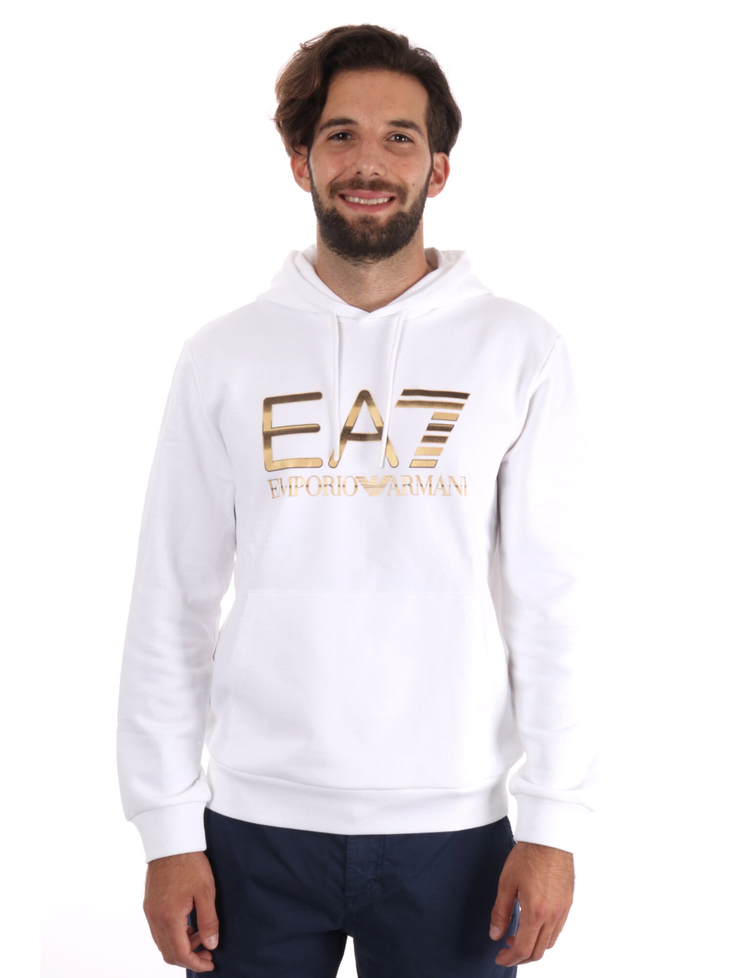 FELPA TRAIN LOGO EA7 EMPORIO ARMANI DA UOMO BIANCO ORO