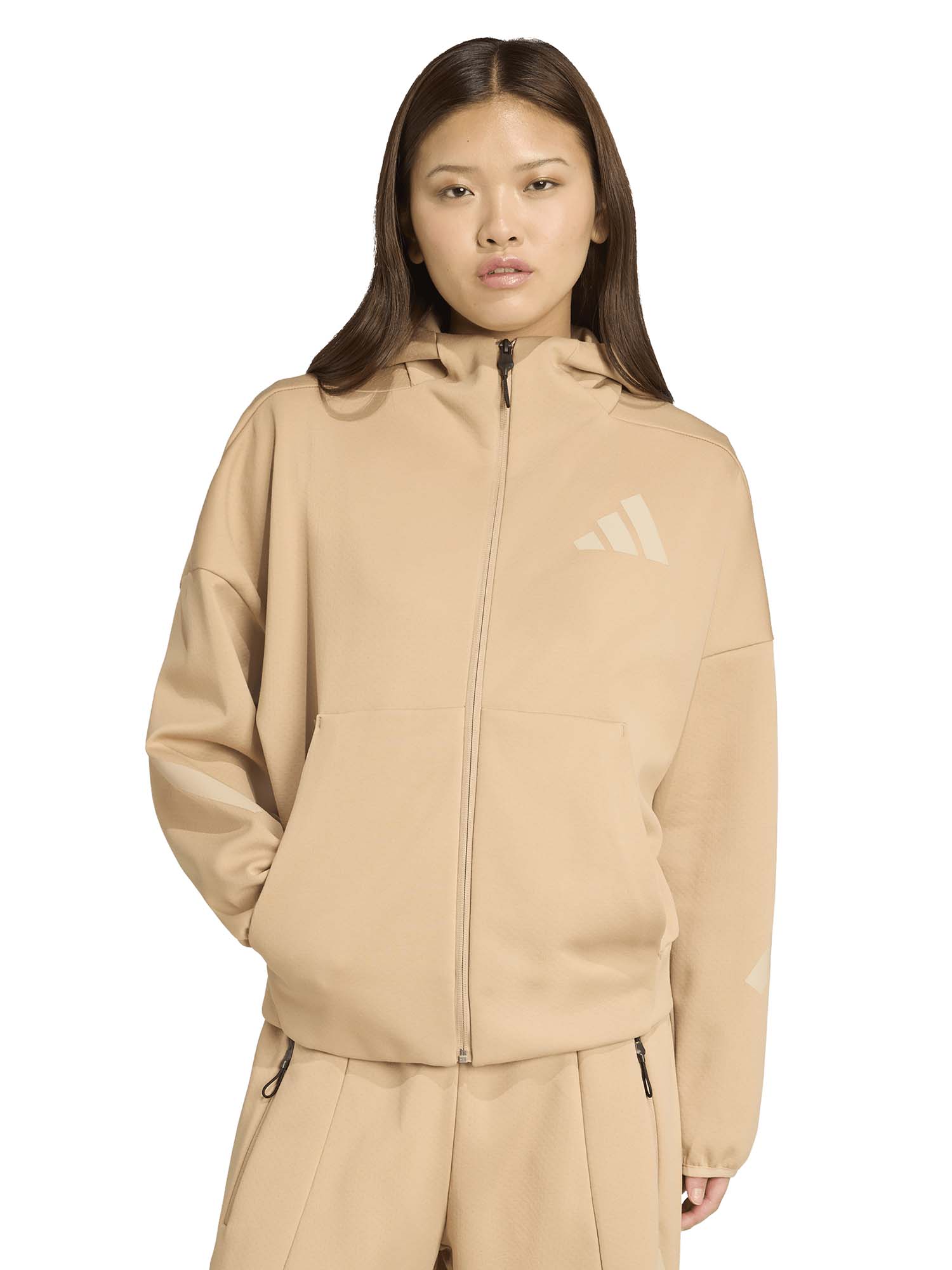 FELPA CON CAPPUCCIO E FULL ZIP Z.N.E. ADIDAS DA DONNA NOCCIOLA