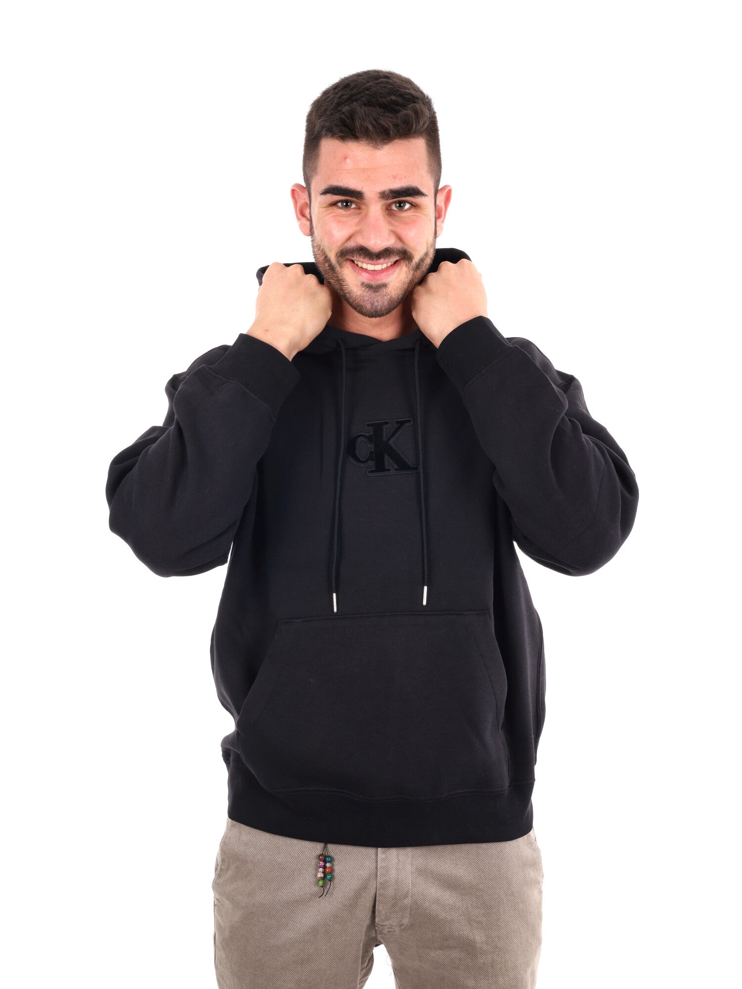 FELPA CON CAPPUCCIO E LOGO CALVIN KLEIN DA UOMO NERO