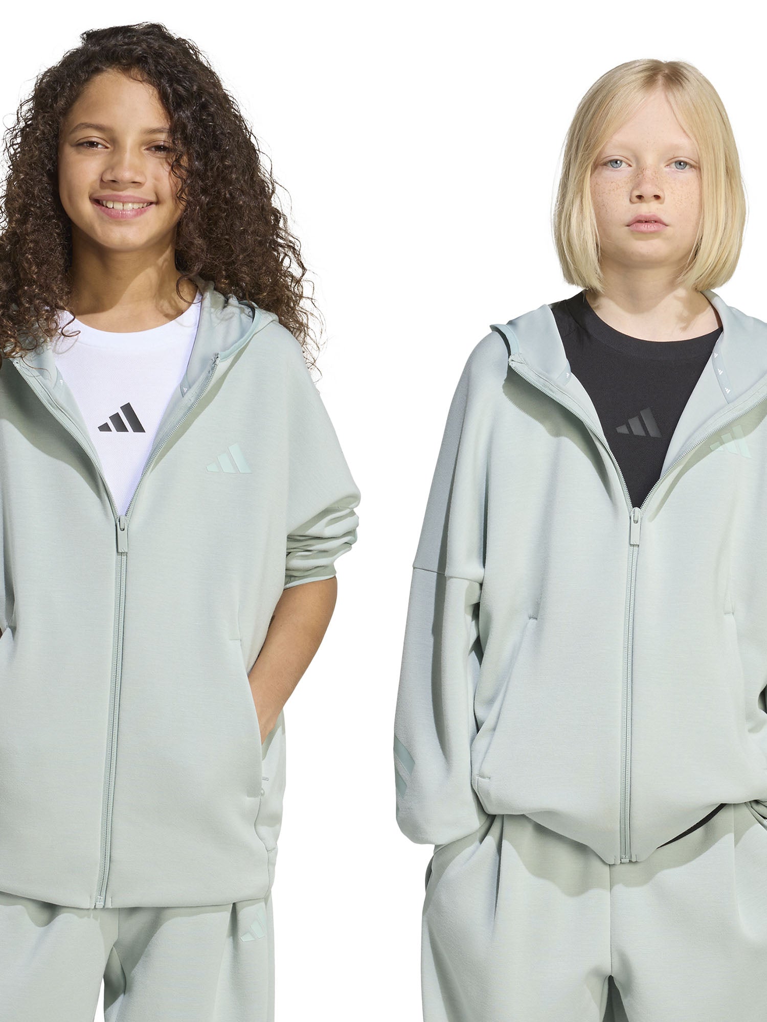 FELPA SALVIA ADIDAS CON CAPPUCCIO + ZIP DA BAMBINA