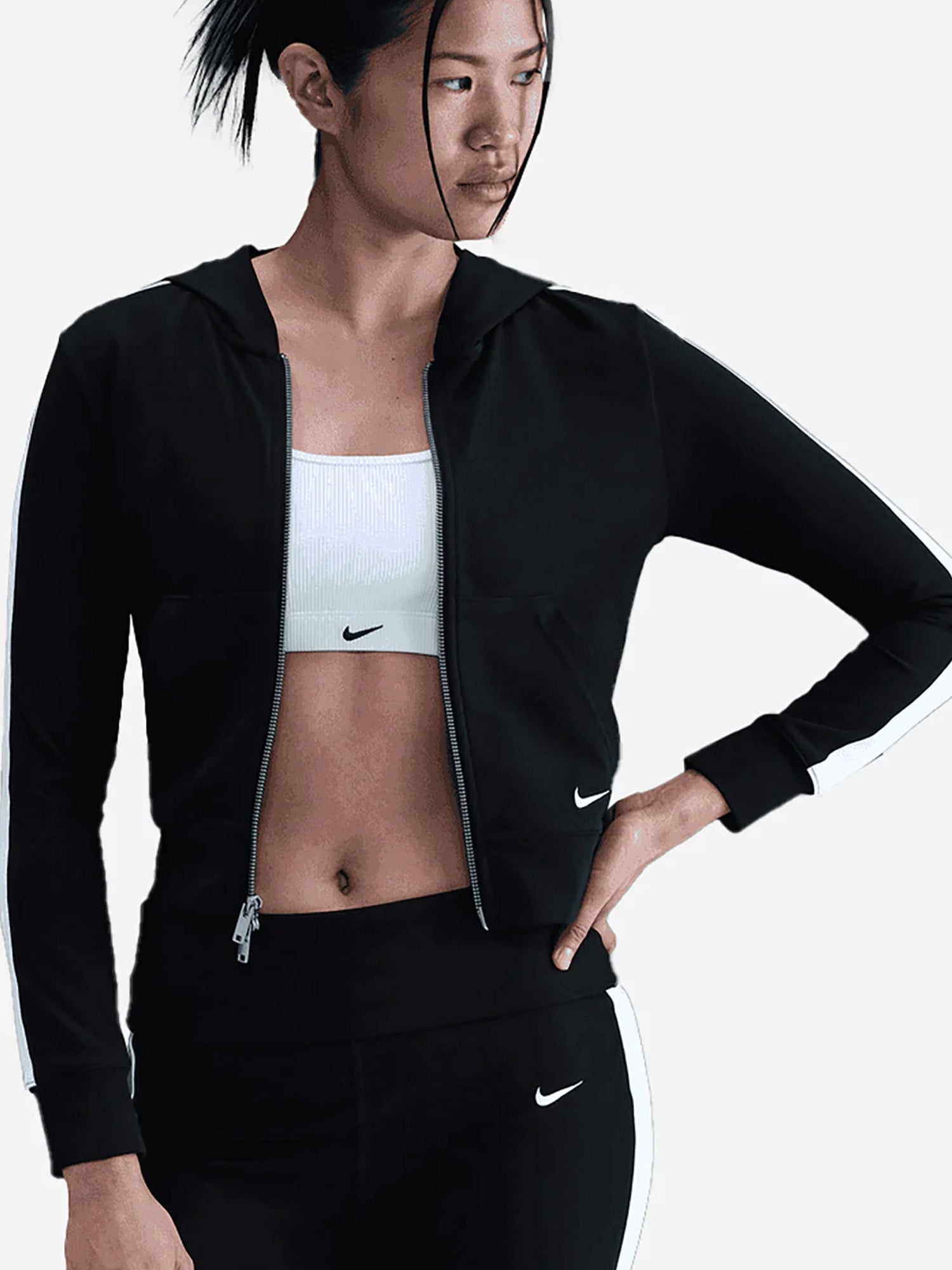 FELPA CON CAPPUCCIO E ZIP NIKE DA DONNA NERO