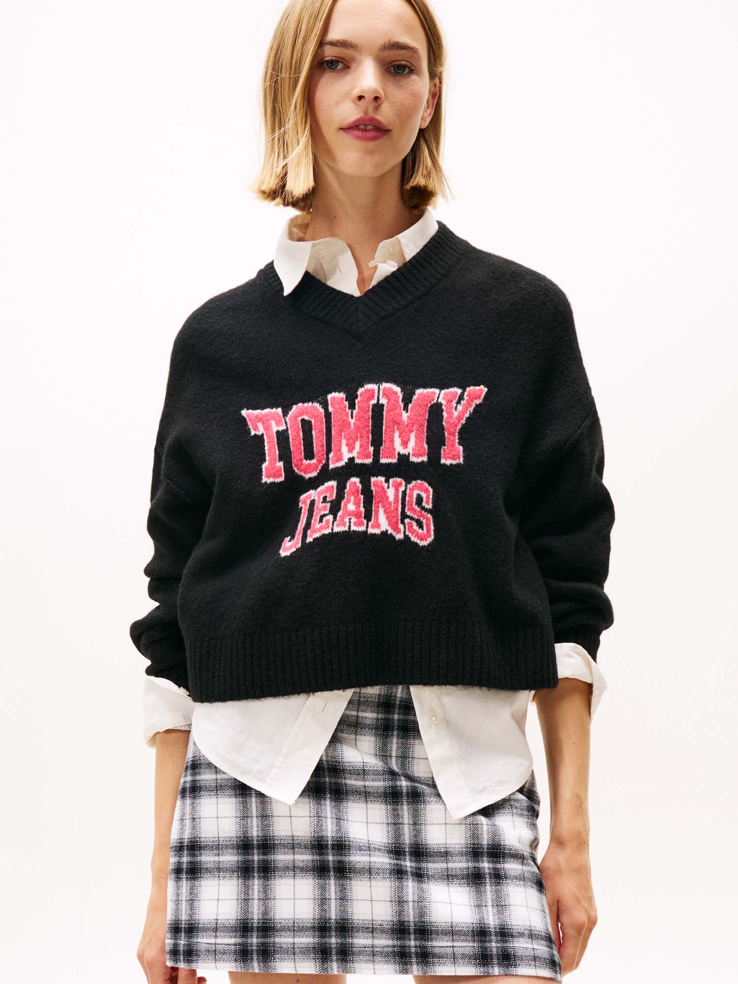 MAGLIONE VARSITY CON SCOLLO A V TOMMY JEANS DA DONNA NERO