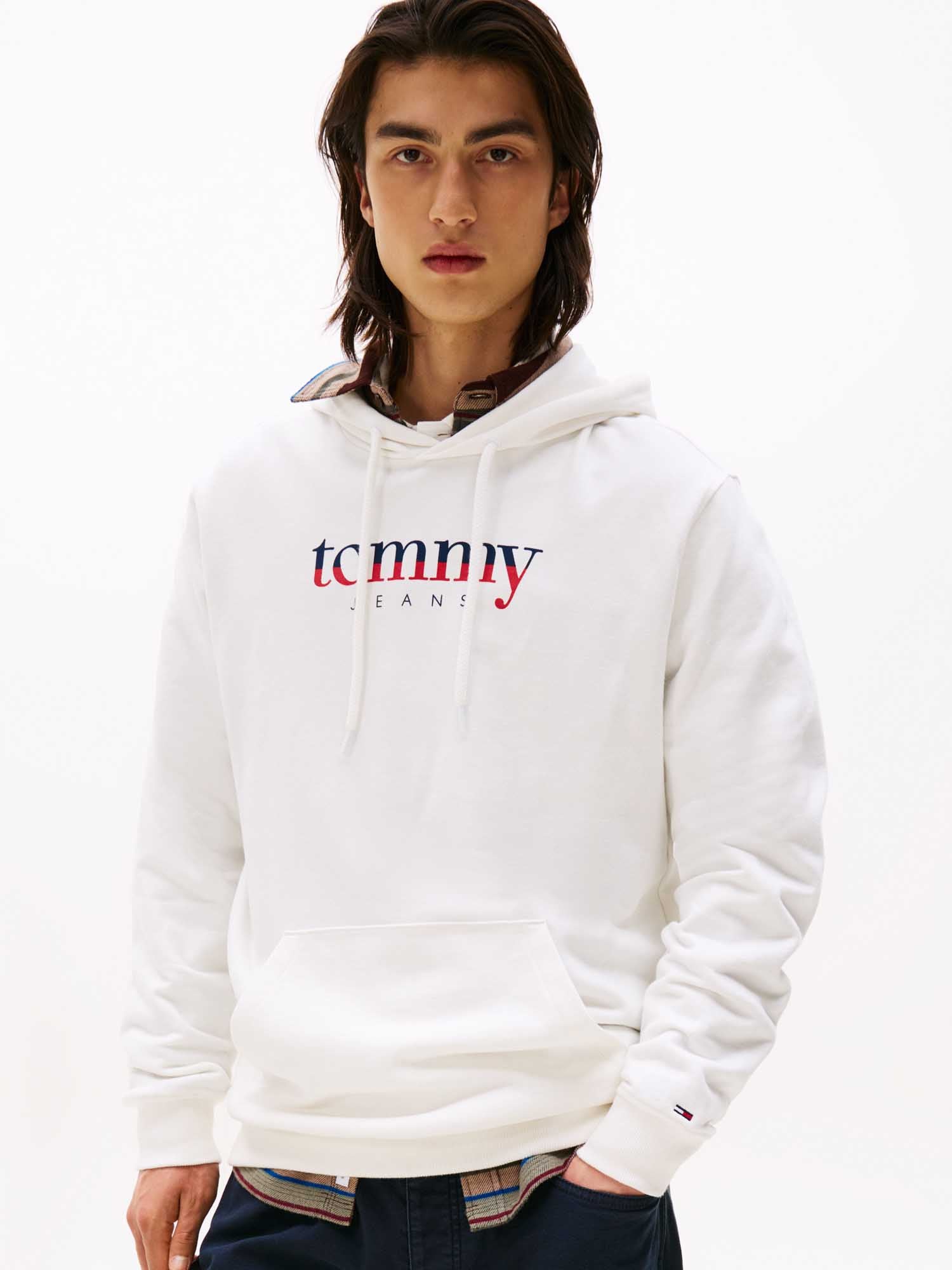 FELPA CON CAPPUCCIO E LOGO TOMMY JEANS DA UOMO BIANCO