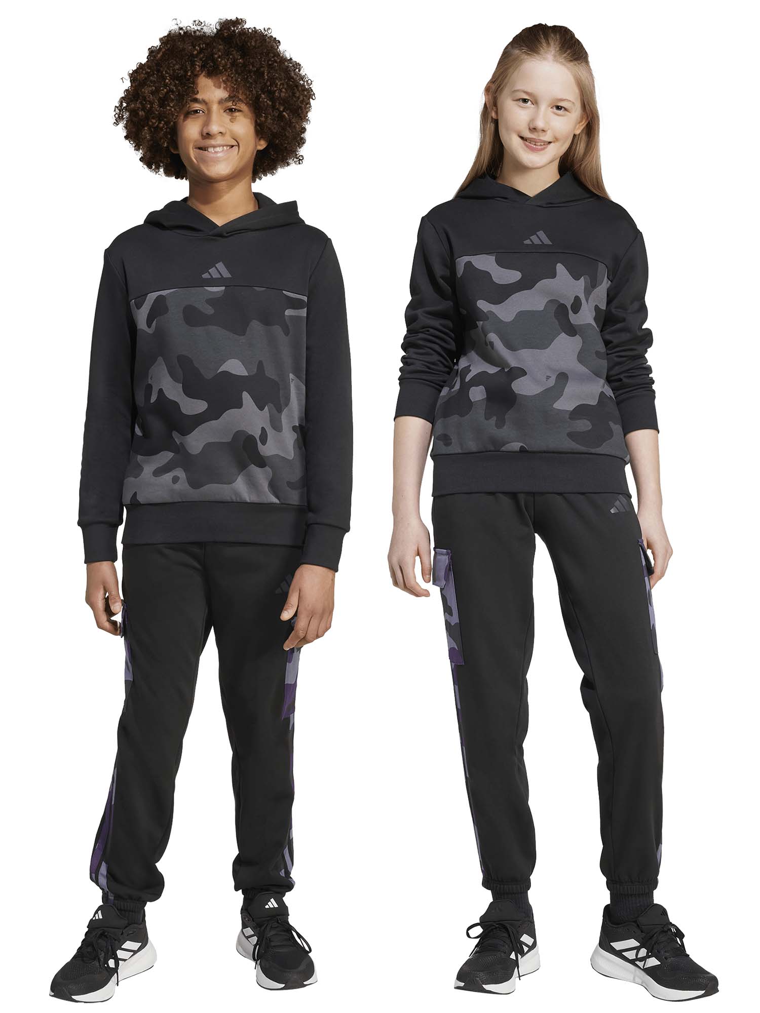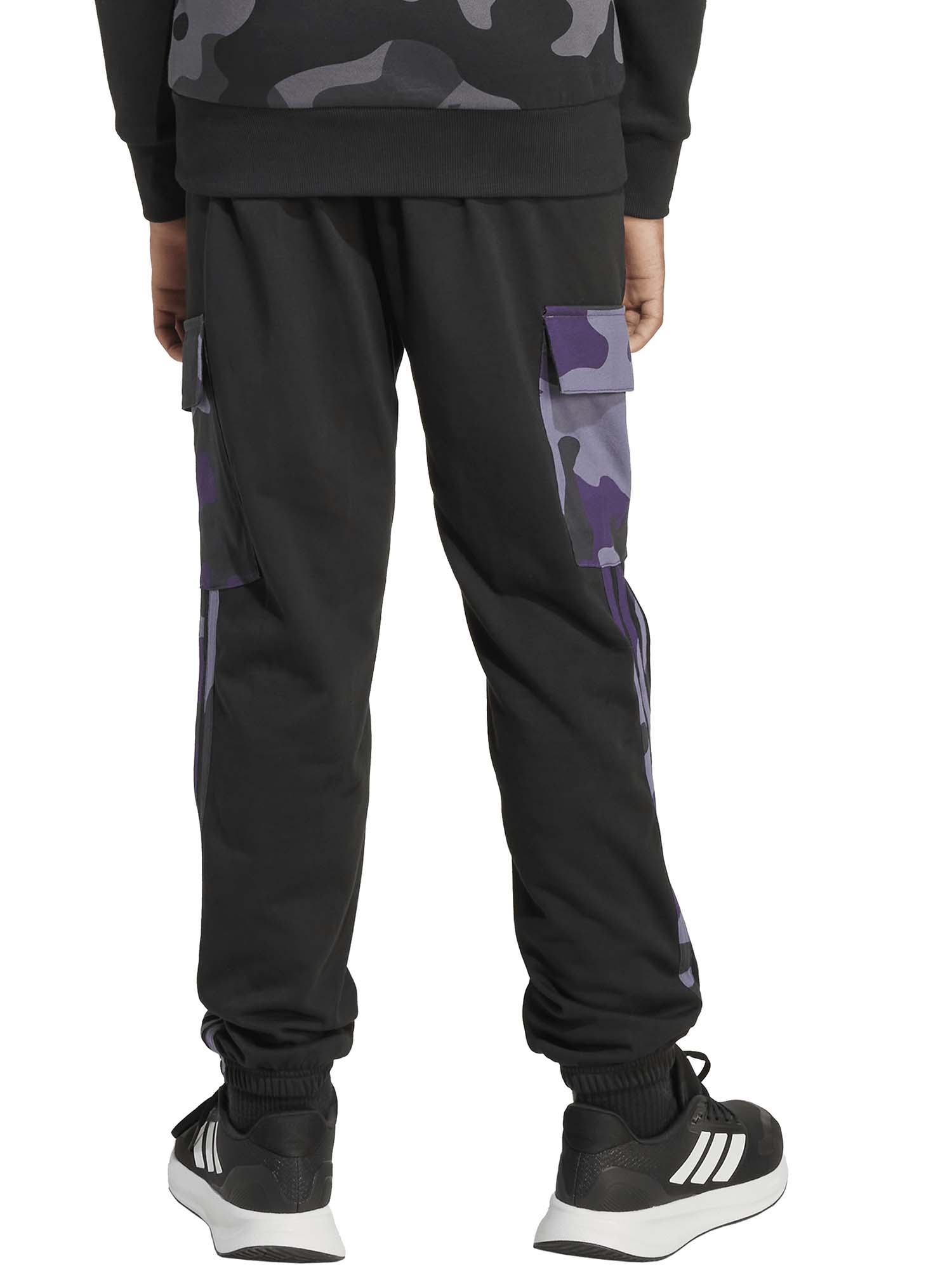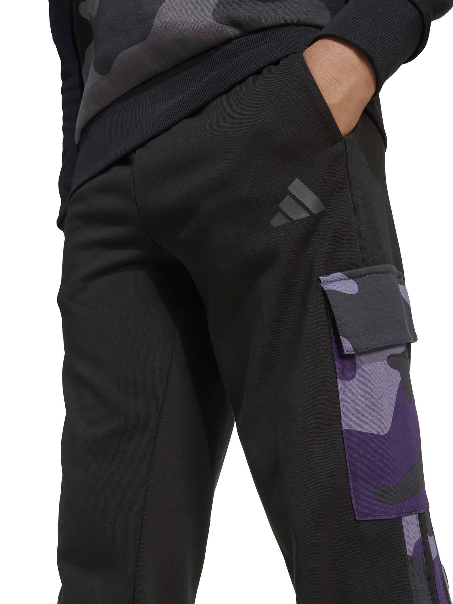 Questi pantaloni Adidas della collezione autunno/inverno junior uniscono comfort e stile in ogni momento della giornata. Il tessuto in morbido cotone con interno garzato assicura una sensazione avvolgente e calda, perfetta per il tempo libero. Le tasche cargo con stampa camo donano un tocco audace e contemporaneo, mentre la vita elasticizzata con coulisse regolabile e i fondi elasticizzati garantiscono una vestibilità comoda e personalizzabile.