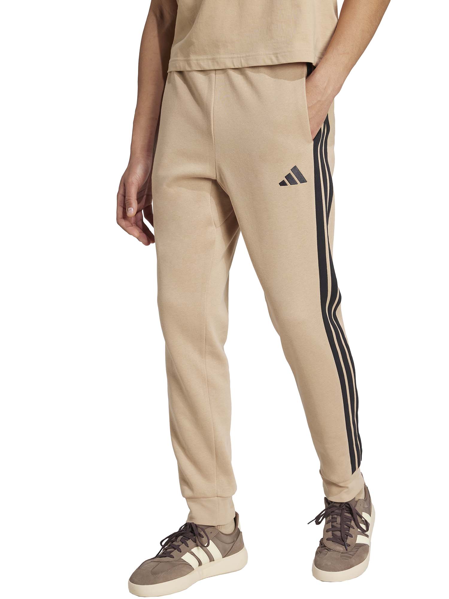 PANTALONE TUTA ESSENTIALS 3-STRIPES FLEECE ADIDAS DA UOMO NOCCIOLA