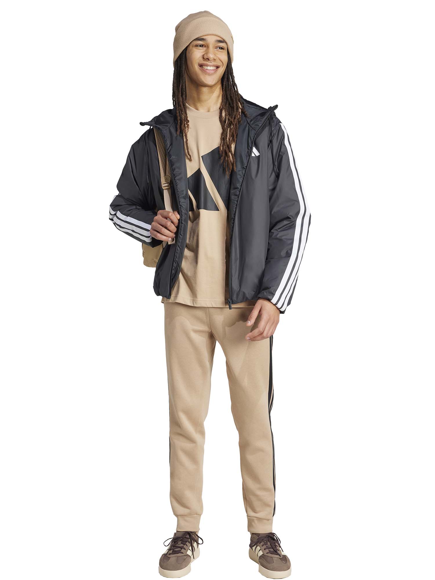 Realizzati in morbido tessuto felpato, questi pantaloni da uomo Adidas della collezione autunno/inverno assicurano calore e comfort ideali per la stagione fredda. Gli orli a coste contribuiscono a trattenere il calore, mentre le iconiche 3 strisce lungo i lati donano un look atletico e dinamico, perfetto per chi predilige uno stile sportivo. Dotati di vita elasticizzata con coulisse per una vestibilità regolabile e comoda, includono due pratiche tasche anteriori per custodire gli oggetti essenziali. Inoltre, la realizzazione con materiali riciclati rende questo capo una scelta consapevole che unisce prestazioni, stile e rispetto per l’ambiente.