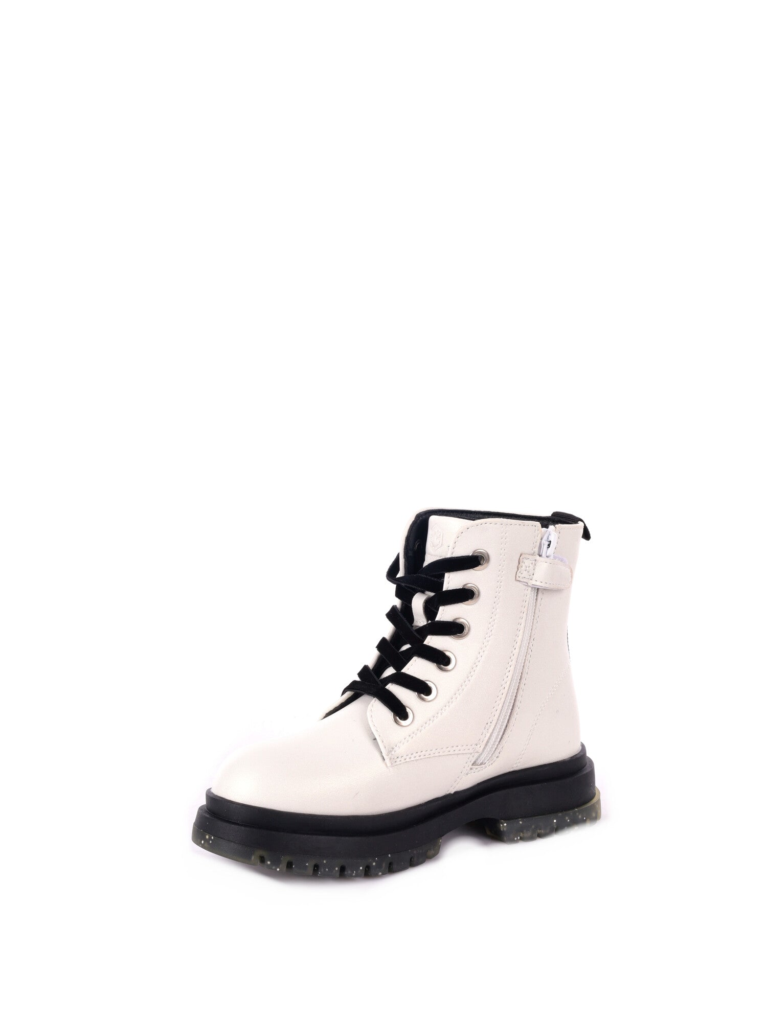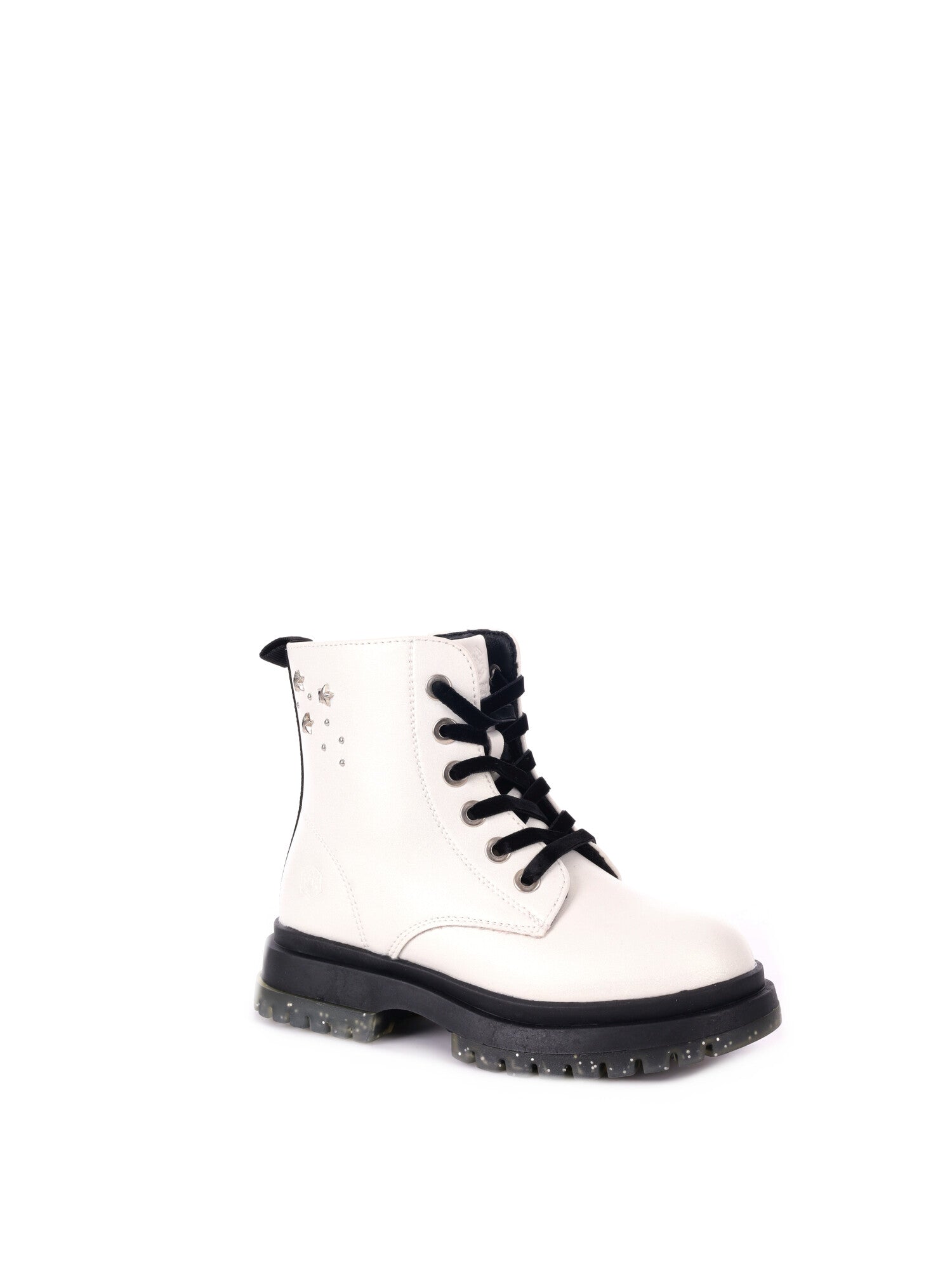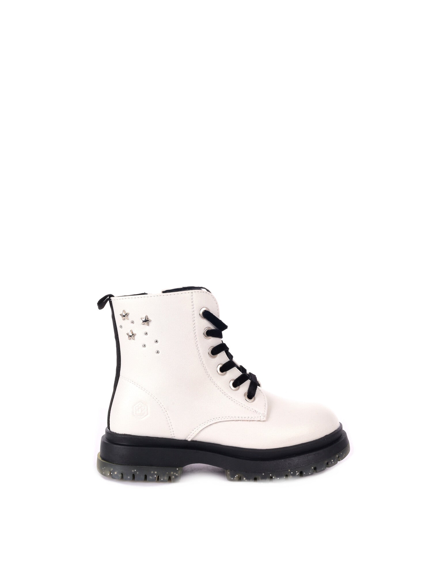 La doppia chiusura con lacci e zip facilita la calzata e assicura stabilità, mentre la suola carrarmato in gomma con grip offre ottima aderenza e protezione su ogni superficie. Il modello è inoltre impreziosito da mini borchie applicate sul gambale, per un tocco di stile e personalità.