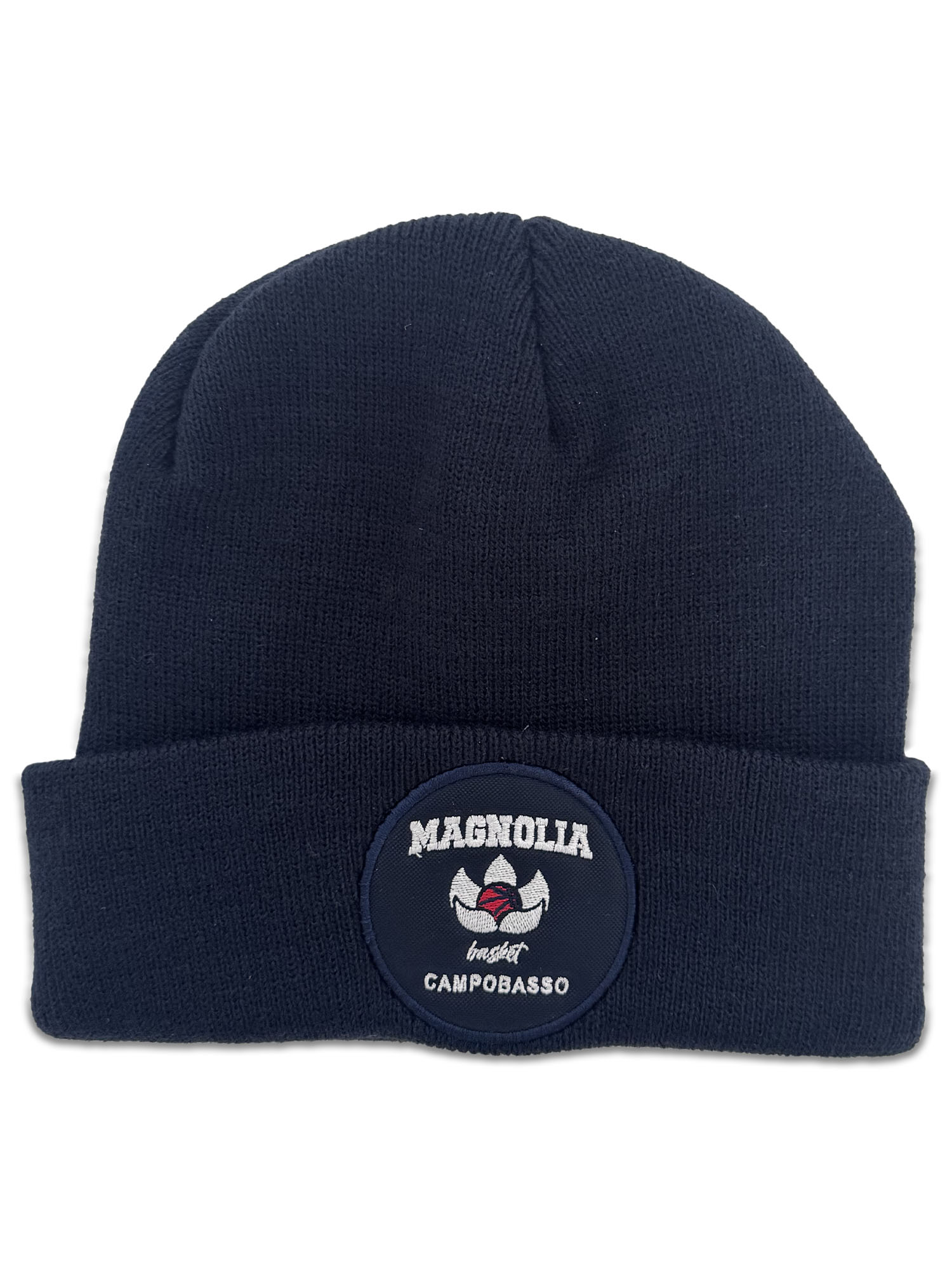 Berretto di lana a costine con risvolto e logo magnolia basket ricamato sul fronte.