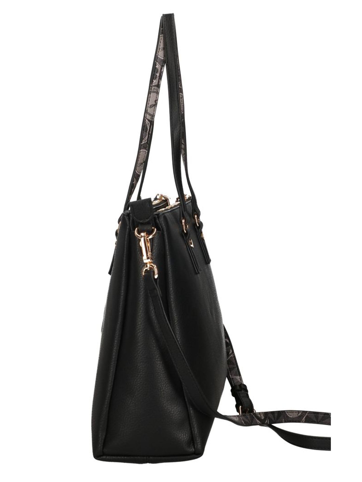 Il modello è dotato di due manici per il trasporto a mano e di una tracolla removibile, che consente di indossarla comodamente a spalla o crossbody secondo le esigenze. La struttura ampia e capiente permette di organizzare con facilità tutti gli oggetti essenziali, rendendola ideale per la vita di tutti i giorni.