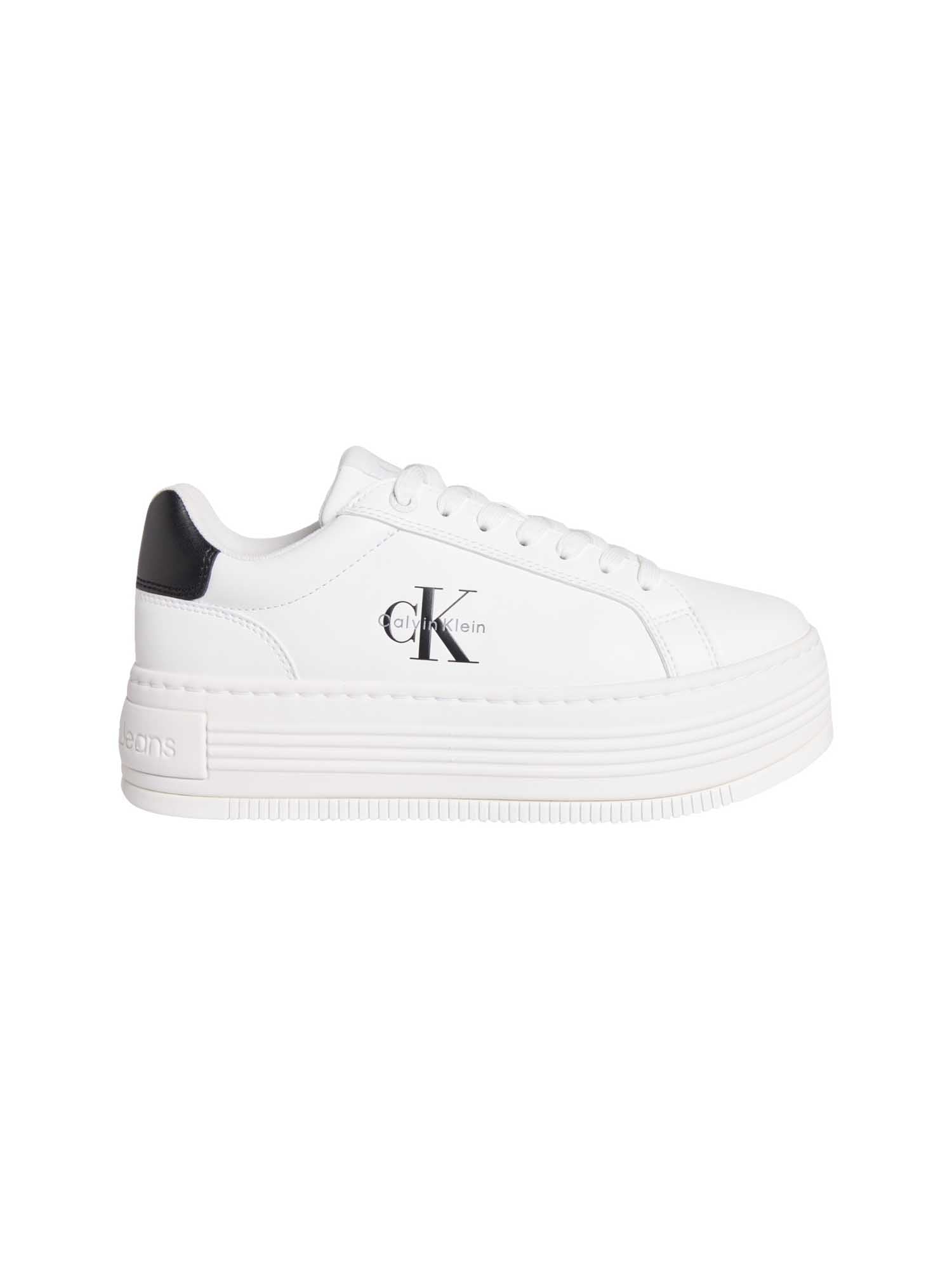 SNEAKERS BOLD FLATF LOW LACE LTH CALVIN KLEIN JEANS DA DONNA BIANCO NERO