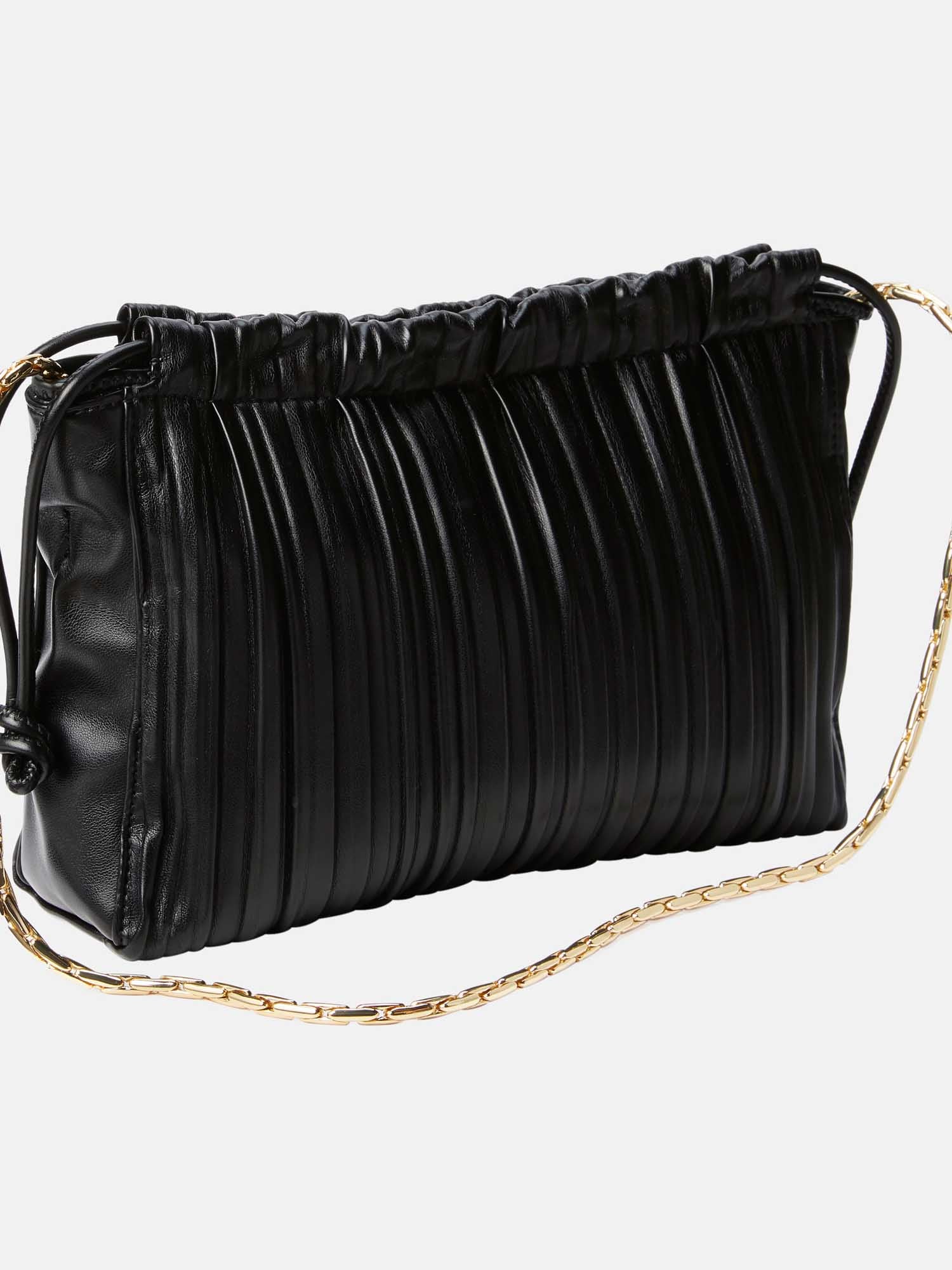 Elegante borsa a tracolla della collezione autunno/inverno Calvin Klein Jeans, realizzata in ecopelle plissettata ultra morbida. Caratterizzata da una chiusura a cordoncino e una tracolla a catena di alta qualità, ispirata ai gioielli, questa borsa unisce stile e raffinatezza. La pratica chiusura a coulisse con magnete centrale e la tasca interna con zip offrono un mix perfetto di design sofisticato e funzionalità. Ideale per completare ogni look con un tocco di classe.