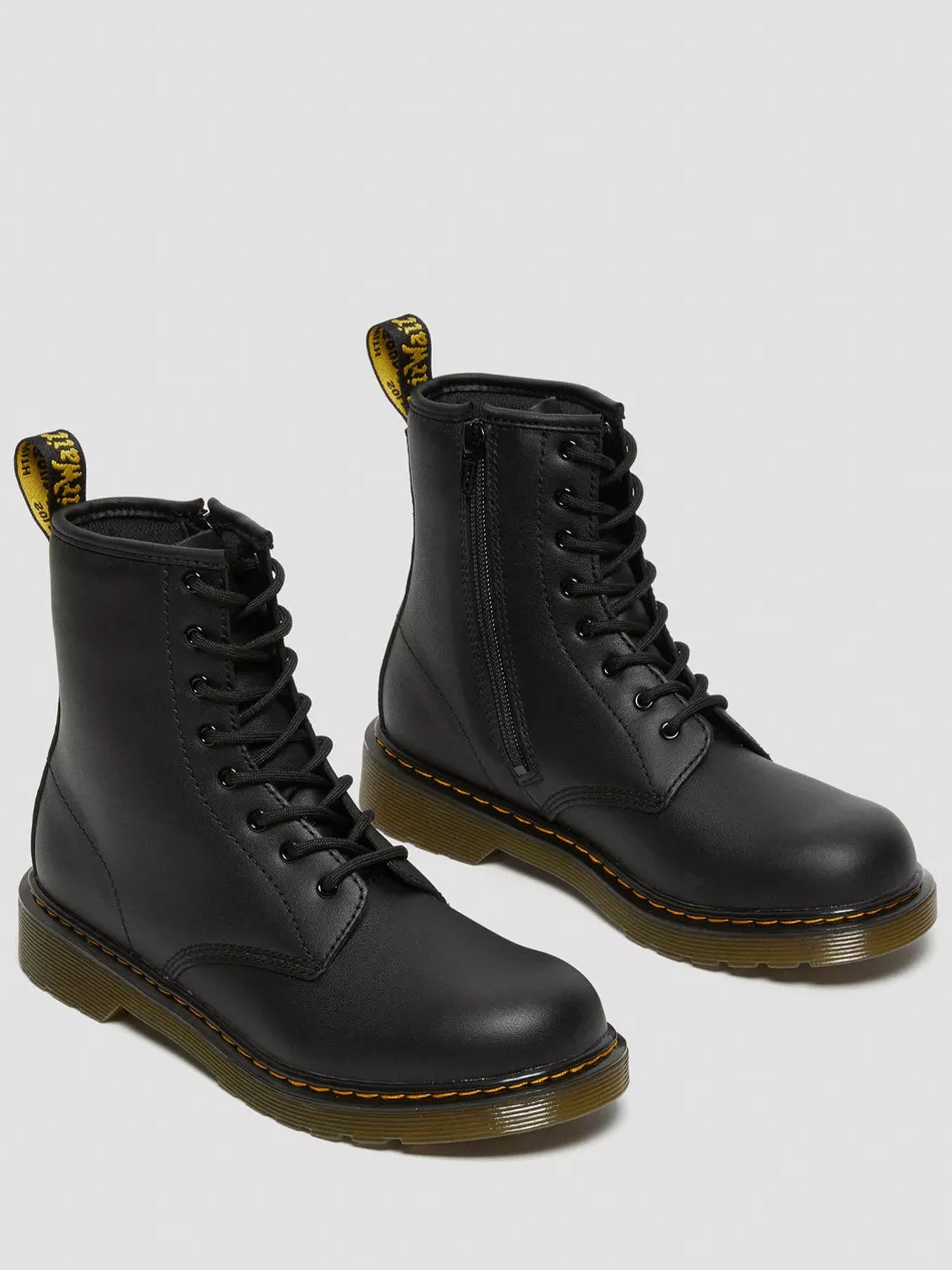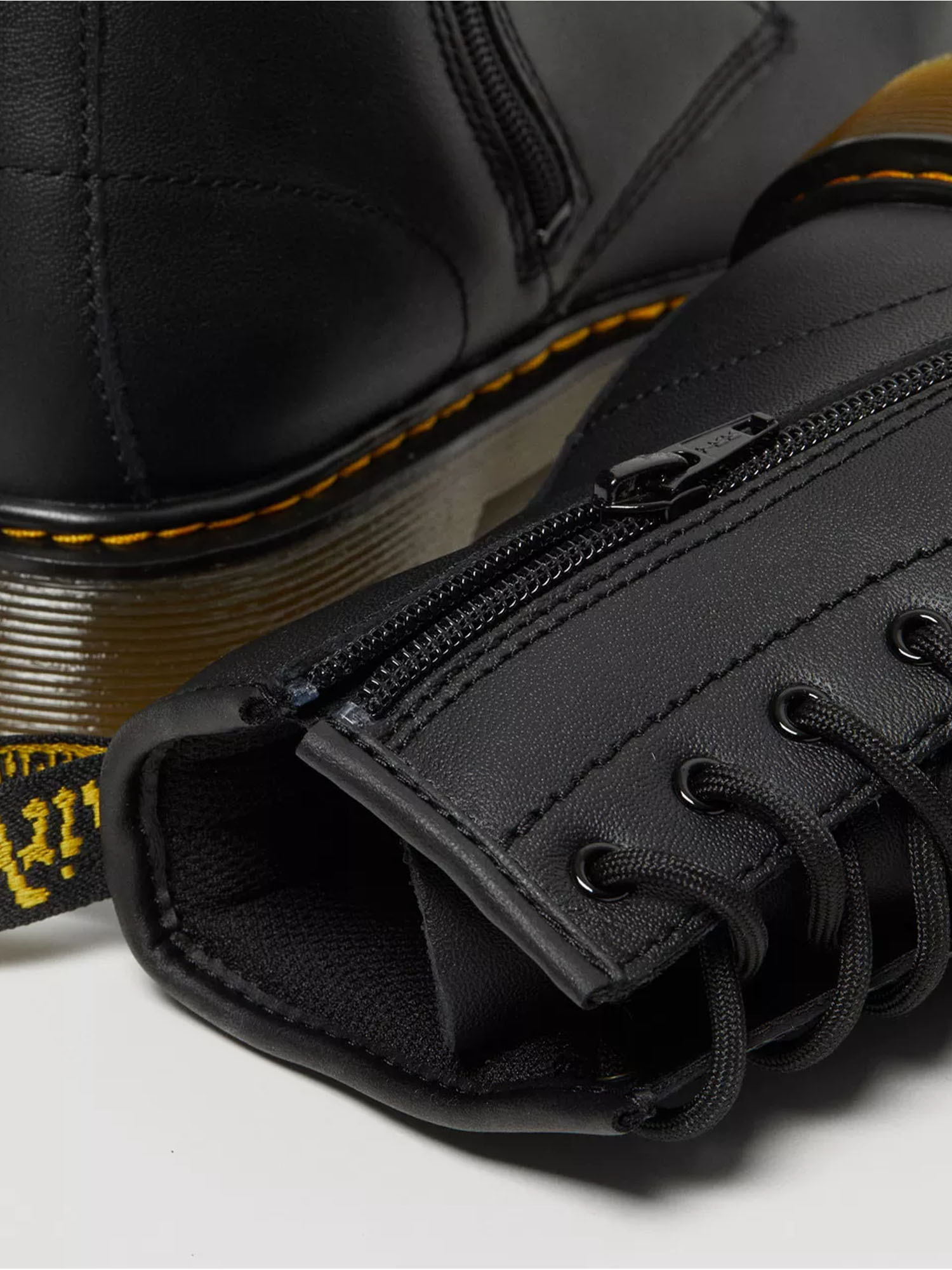 La presenza della cerniera laterale lo rende estremamente pratico da indossare e togliere, senza rinunciare al look originale con lacci a 8 fori, punta arrotondata e linee pulite. L’identità Dr. Martens si riflette nei dettagli iconici, come la cucitura gialla a contrasto e il tirante posteriore con logo, elementi che ne sottolineano l’autenticità.
