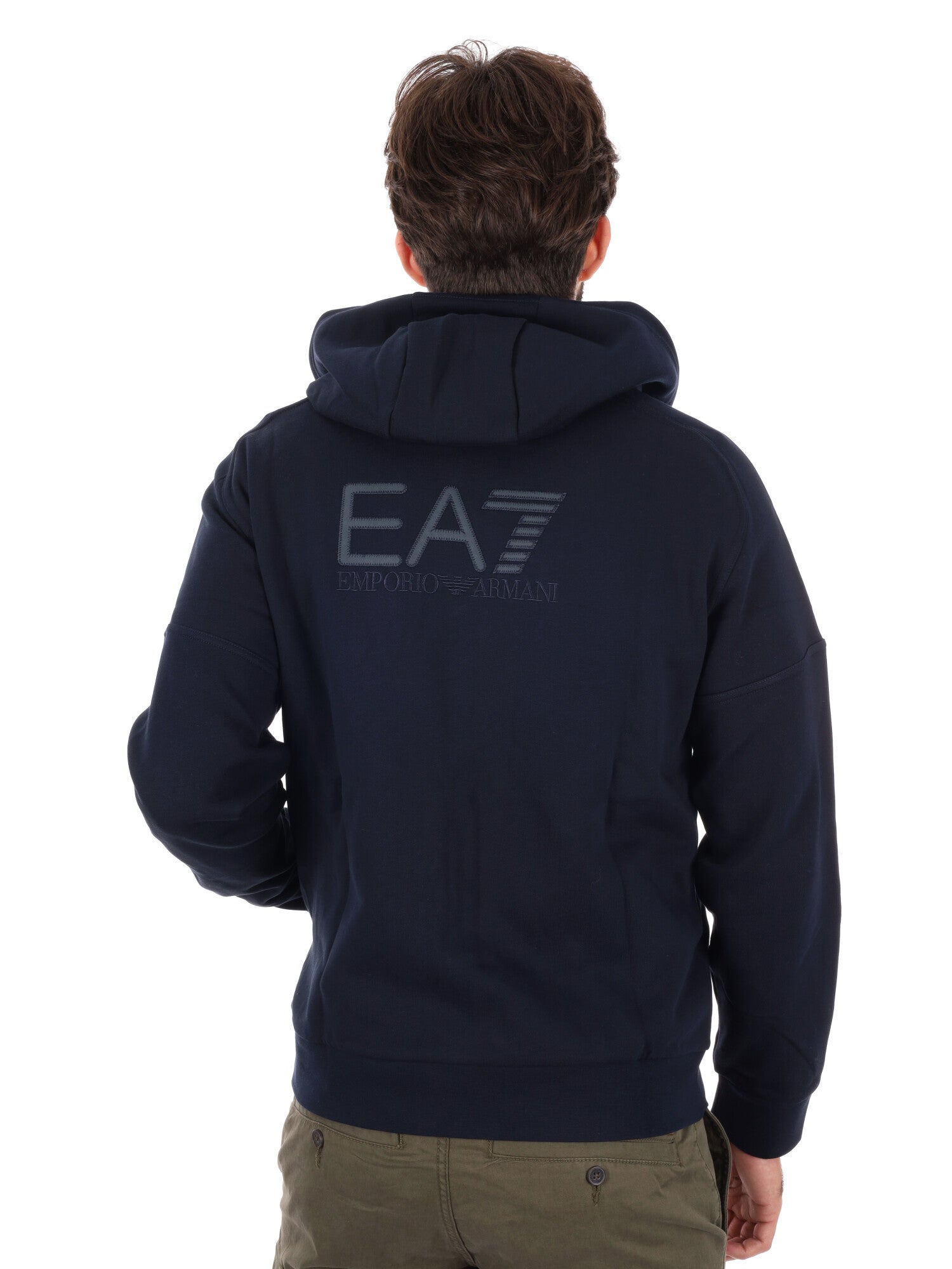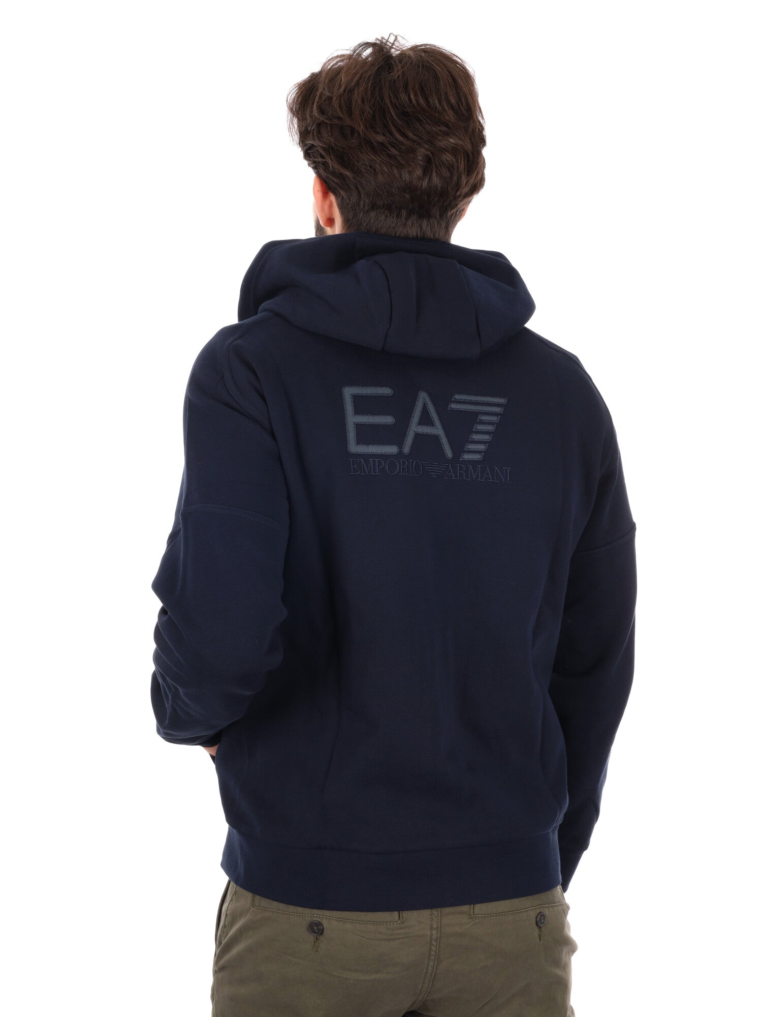 Il logo EA7 a contrasto sul petto aggiunge un tocco distintivo, rendendo la felpa versatile per look casual, sportivi o urban-chic. La vestibilità regular garantisce libertà di movimento e un comfort duraturo, confermando la felpa come un capo essenziale per il guardaroba maschile.