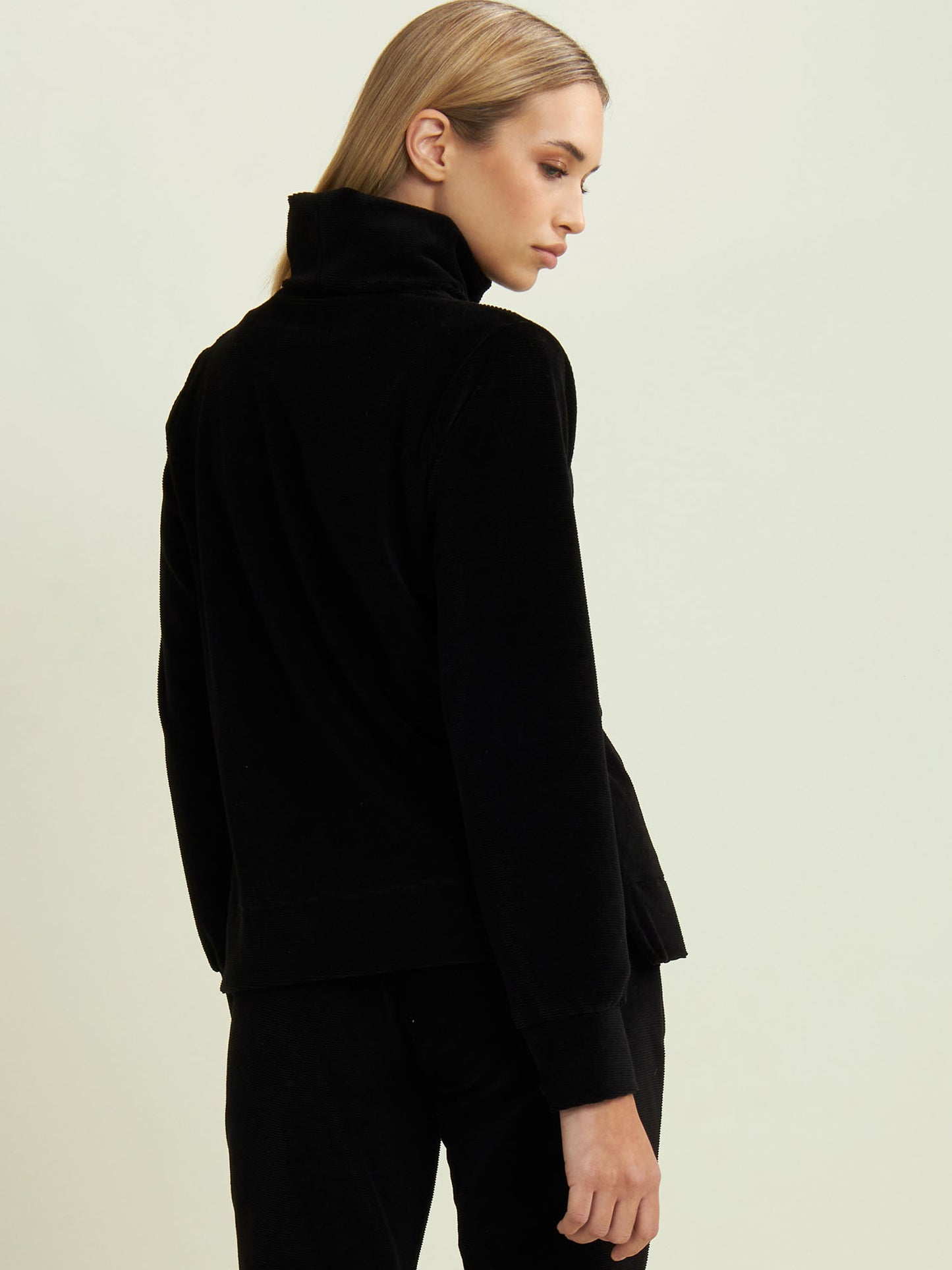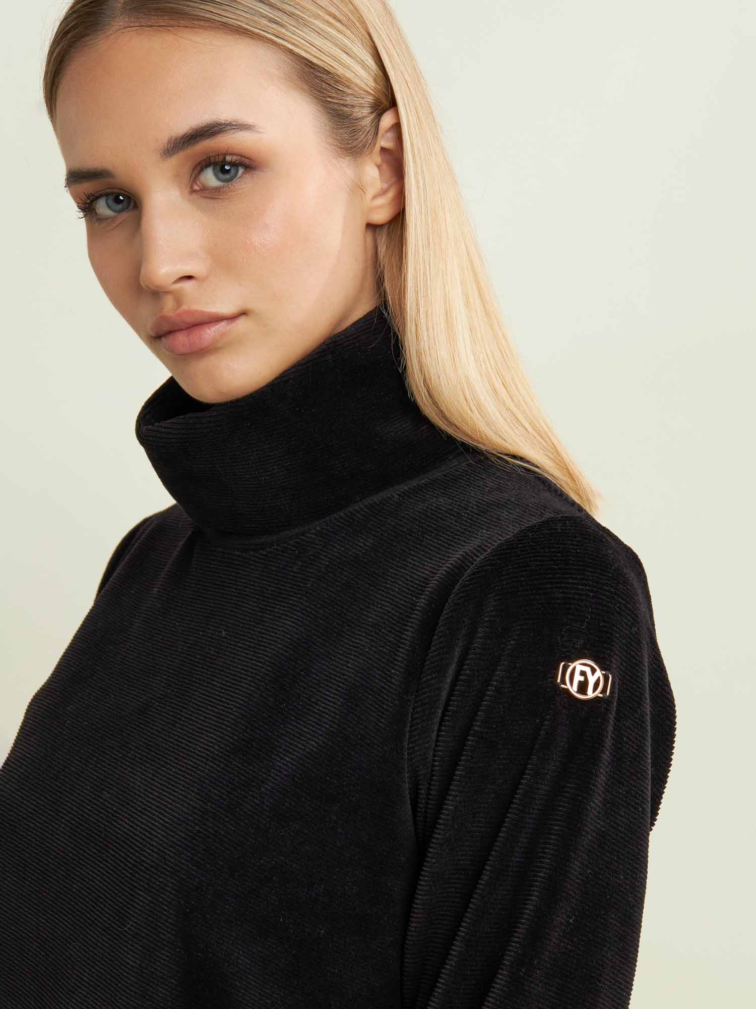 Felpa da donna firmata FREDDY in cotone a righe sottili dal tocco vellutato, che unisce morbidezza e comfort in ogni momento della giornata. Il collo alto e morbido avvolge con calore, mentre il fondo dritto con spacchi laterali e i polsini rifiniti aggiungono eleganza e praticità.