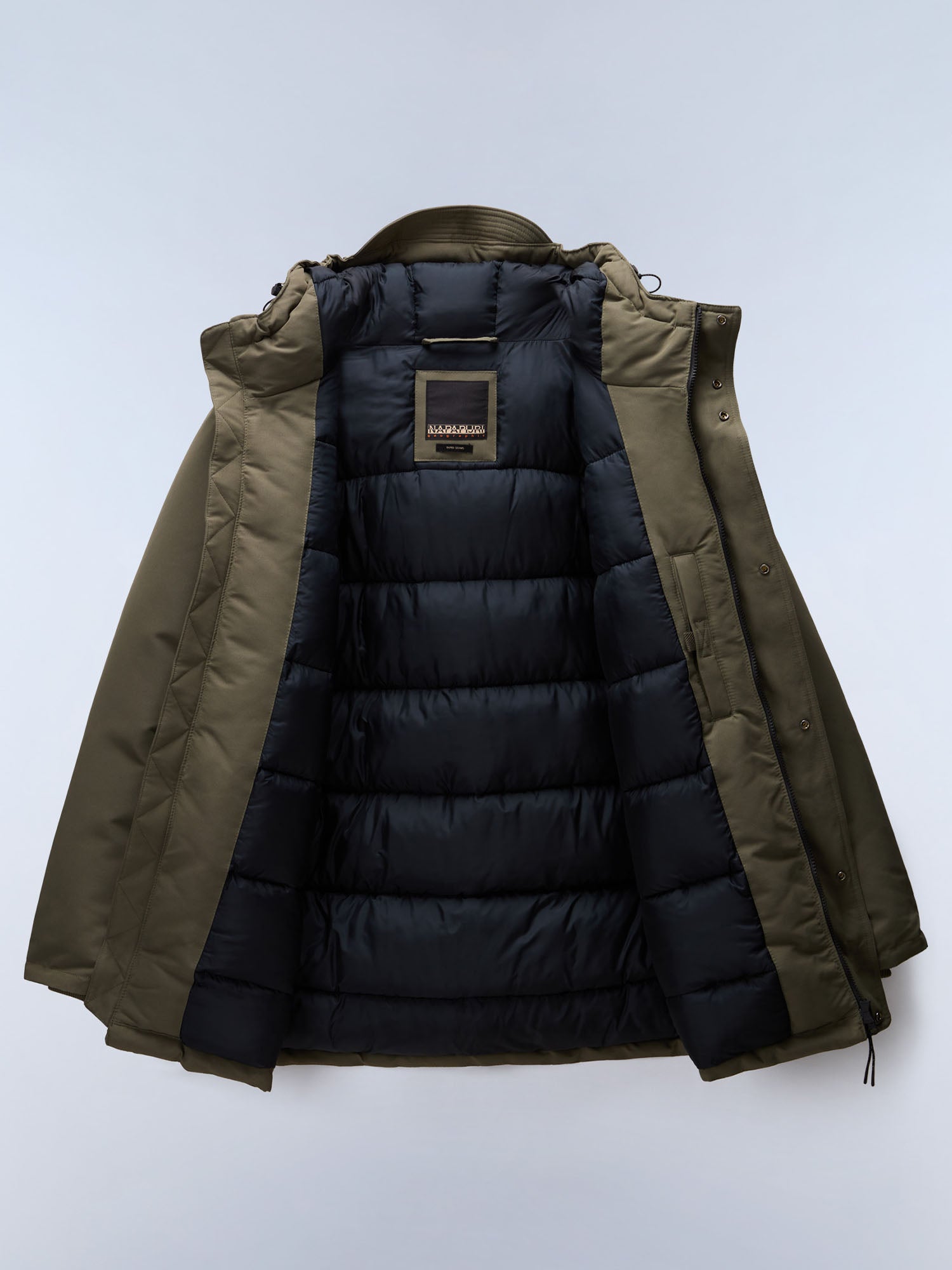 Completano il design la chiusura frontale con zip e patta antivento, le tasche laterali pratiche e i dettagli distintivi Napapijri, che conferiscono al capo un aspetto moderno e autentico. Un giaccone versatile, funzionale e raffinato, ideale per affrontare l’inverno con stile e massima protezione.