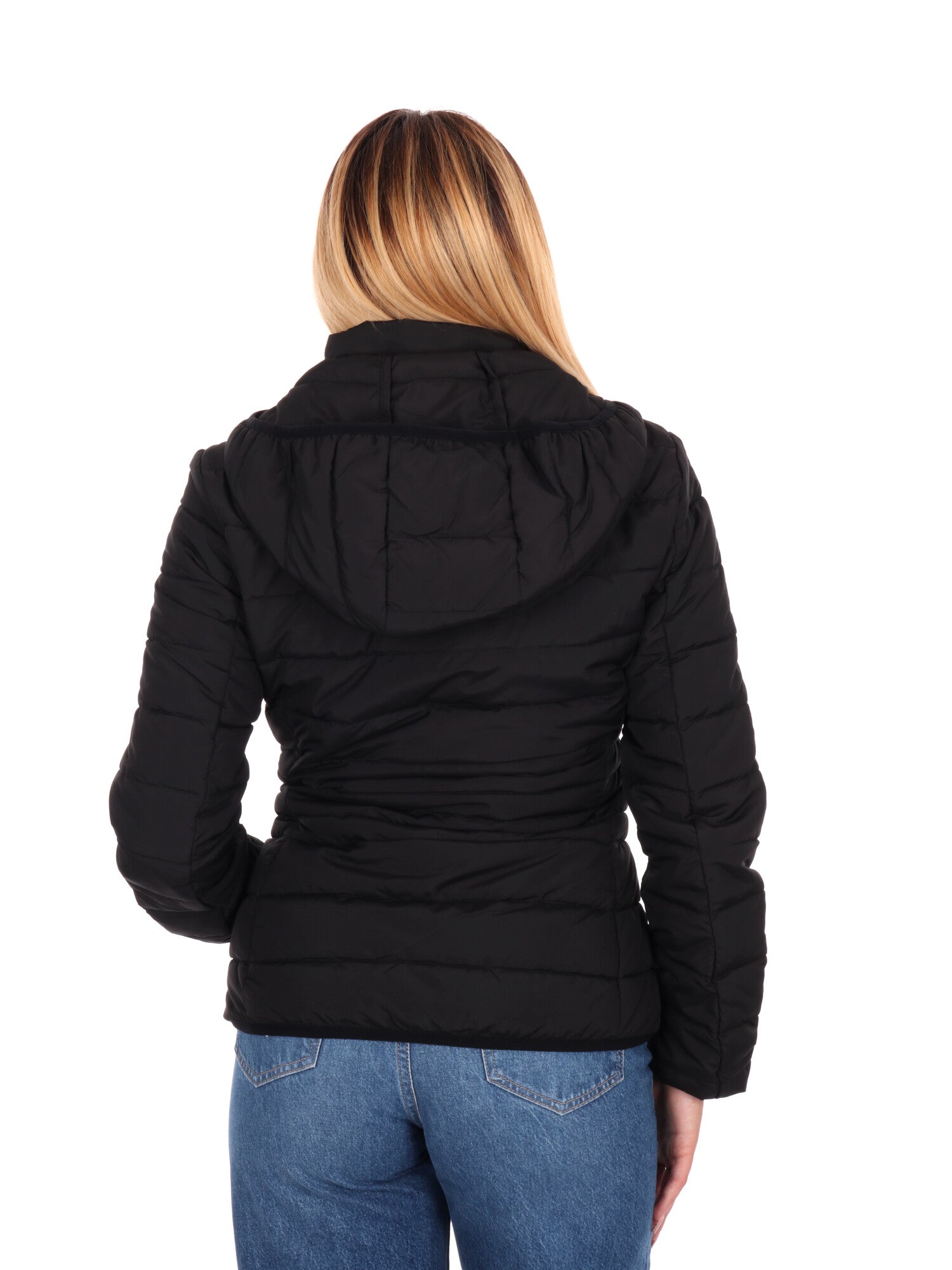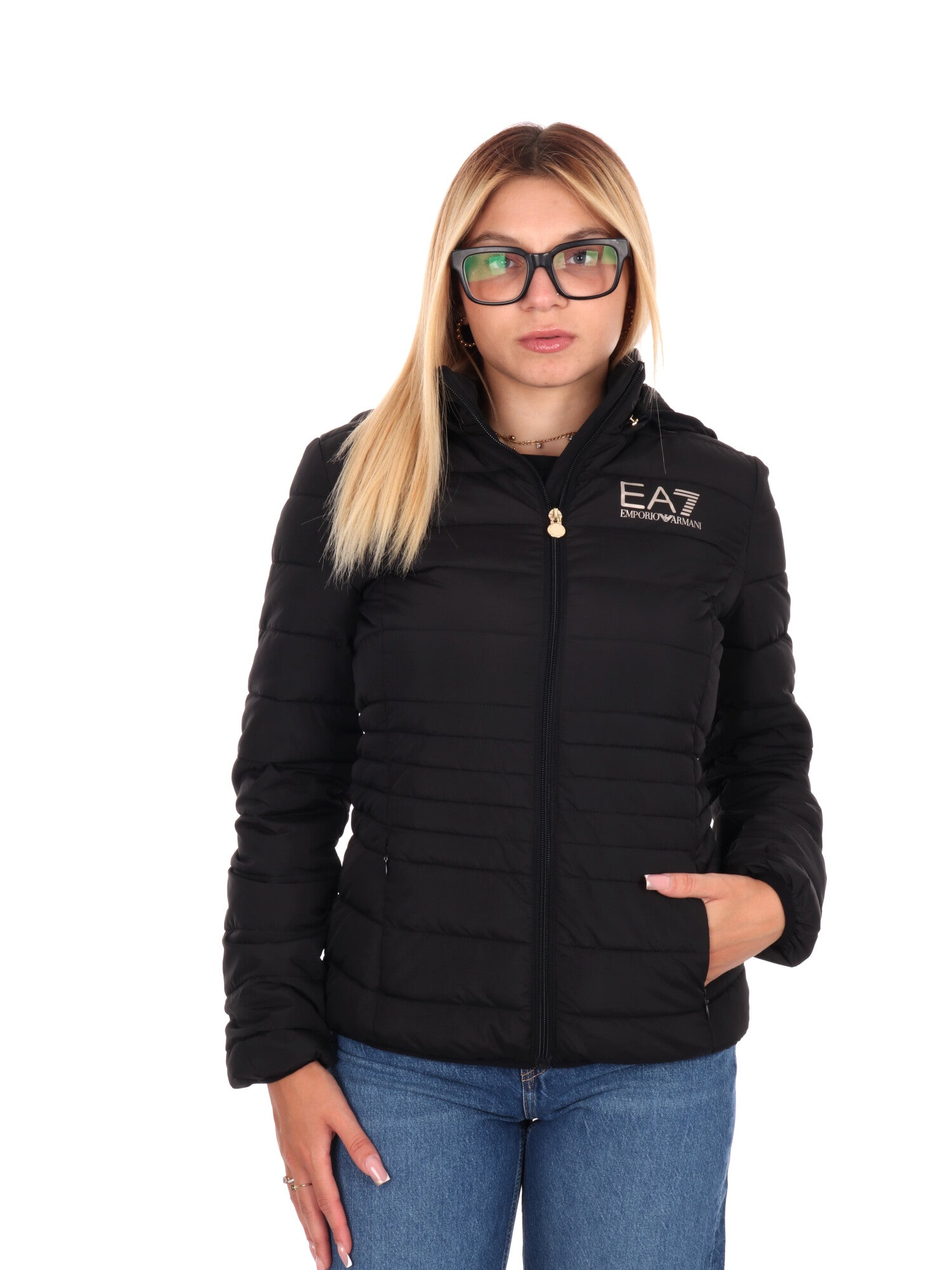 Eleganza sportiva e comfort si fondono in questo giubbino da donna EA7 Emporio Armani, ideale per la mezza stagione o i climi miti dell’autunno/inverno. Realizzato con imbottitura leggera da 100 grammi, unisce design moderno, praticità e il fascino inconfondibile dei dettagli oro su fondo nero.