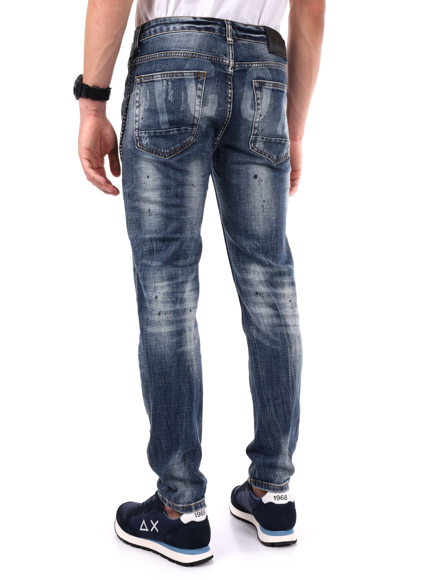 Questi jeans ICON incarnano lo spirito urbano con un design contemporaneo e una forte identità. Confezionati in denim di qualità, offrono una vestibilità slim che valorizza la figura pur garantendo comfort nei movimenti. Il lavaggio usato e le leggere abrasioni donano al capo un fascino vissuto, mentre la stampa ICON sul retro, a contrasto, aggiunge quel dettaglio distintivo capace di catturare lo sguardo.