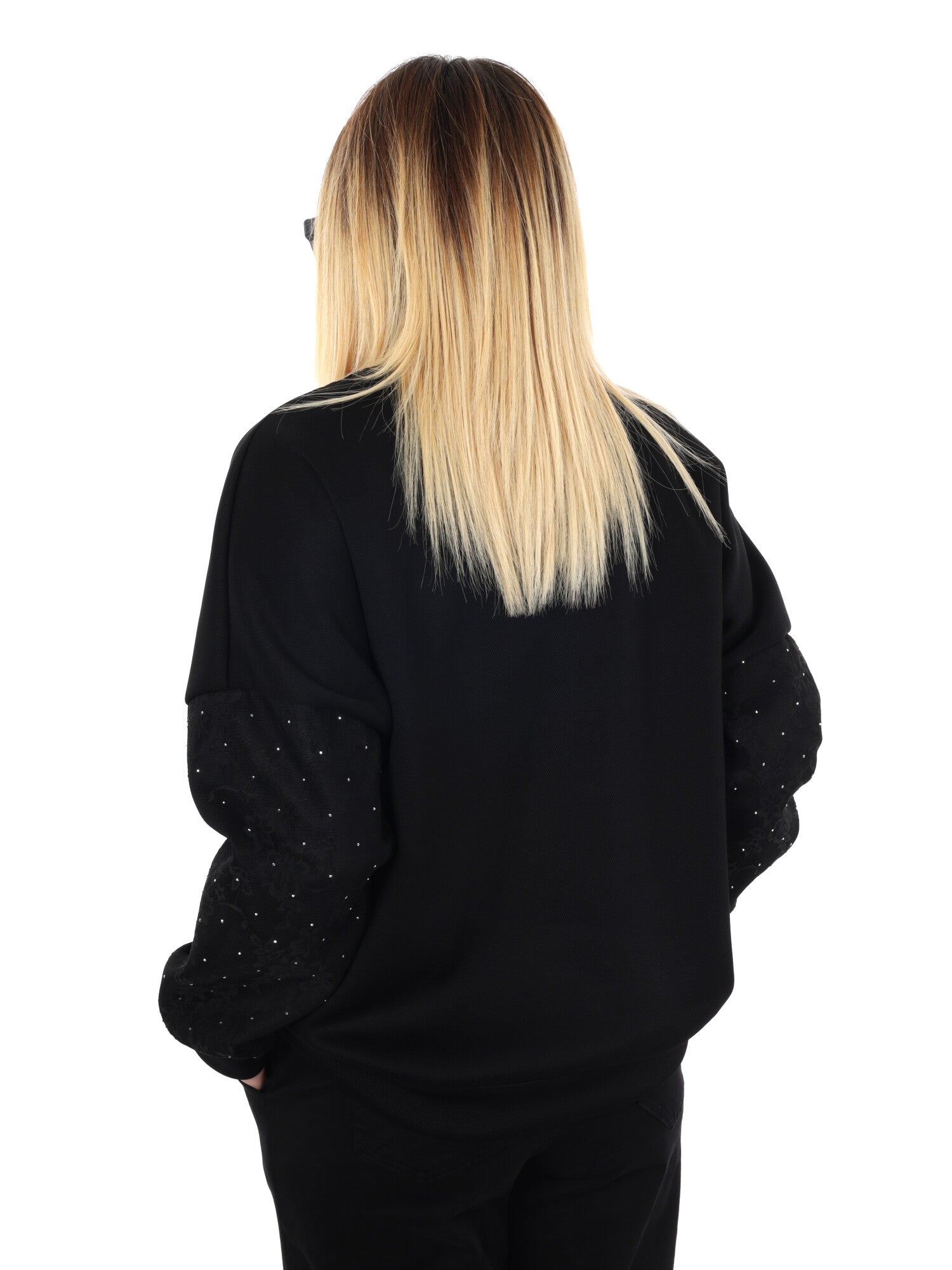 FELPA CON PIZZO E STRASS MISS LOVE DA DONNA NERO