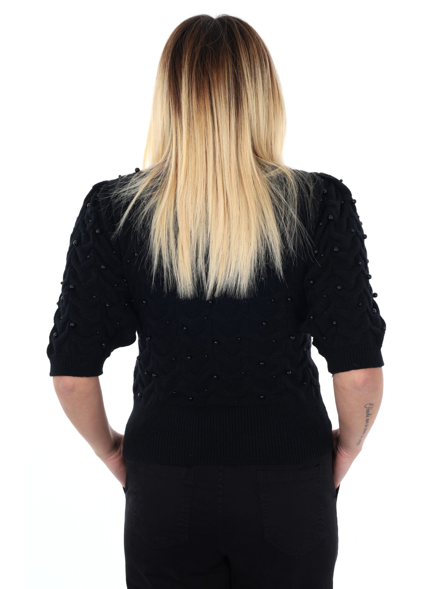 MAGLIA A MANICHE CORTE CON PERLE MISS LOVE DA DONNA NERO