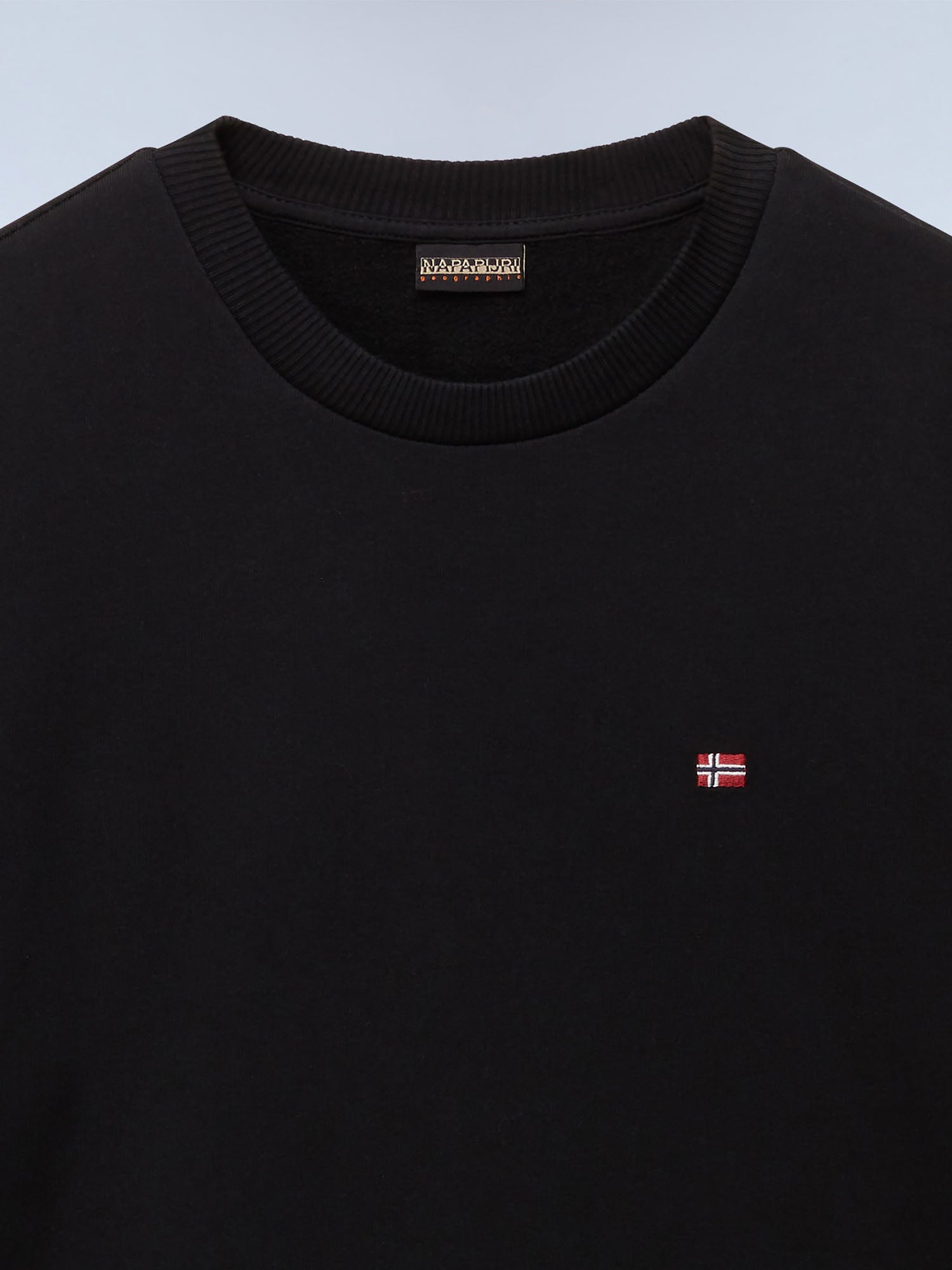 Il design pulito è valorizzato dai bordi a costine su collo, polsi e fondo, che garantiscono una vestibilità confortevole e ben definita. Sul petto spicca la bandierina iconica Napapijri, simbolo di autenticità e spirito outdoor, per un tocco distintivo ma discreto.