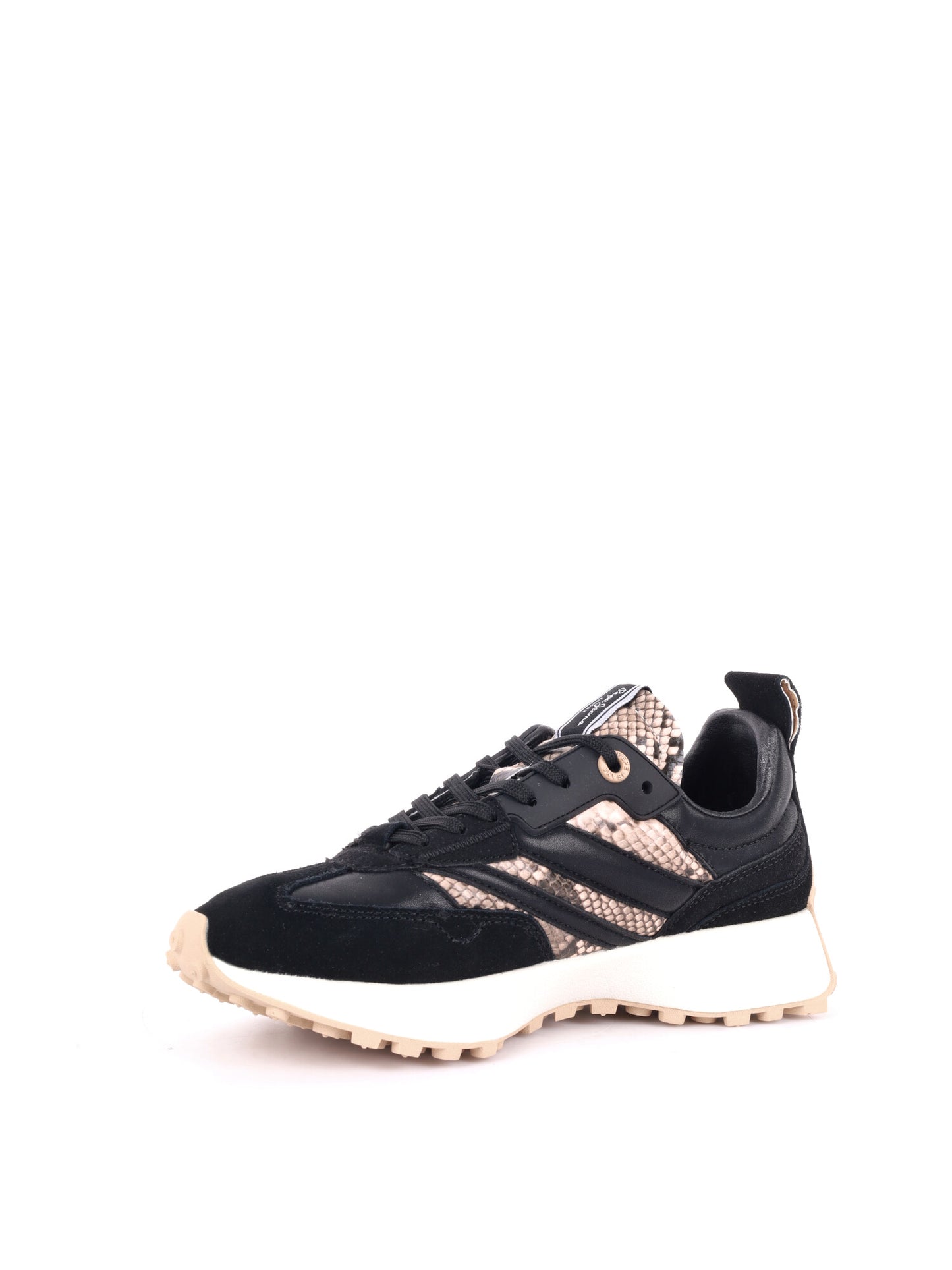 Le sneakers da donna Lucky Fenix di Pepe Jeans, collezione autunno/inverno, incarnano perfettamente l’equilibrio tra carattere audace e comfort quotidiano. Realizzate con materiali misti tra pelle, camoscio e similpelle, si distinguono per i dettagli “animal print” e gli inserti in suede che donano un’allure selvaggia e moderna al design. La chiusura con lacci permette una calzata regolabile, mentre gli occhielli decorati con logo e il classico logo bandiera laterale aggiungono un tocco distintivo. All’interno, la fodera in tessuto e la soletta brandizzata assicurano comodità anche per uso prolungato. La suola in gomma, abbinata a una sottile intersuola in phylon ultraleggera, garantisce ammortizzazione e trazione ottimale.