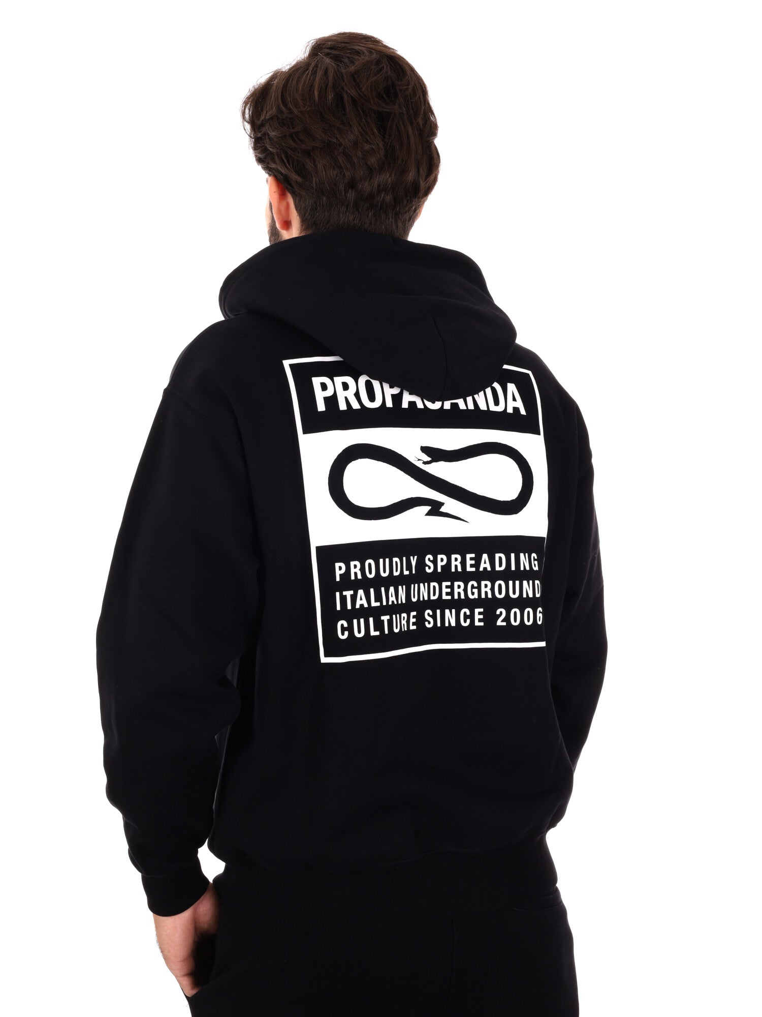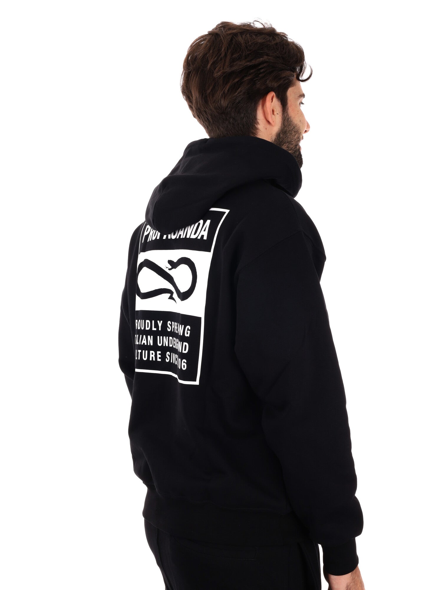 FELPA CON STAMPA SUL RETRO PROPAGANDA DA UOMO NERO BIANCO