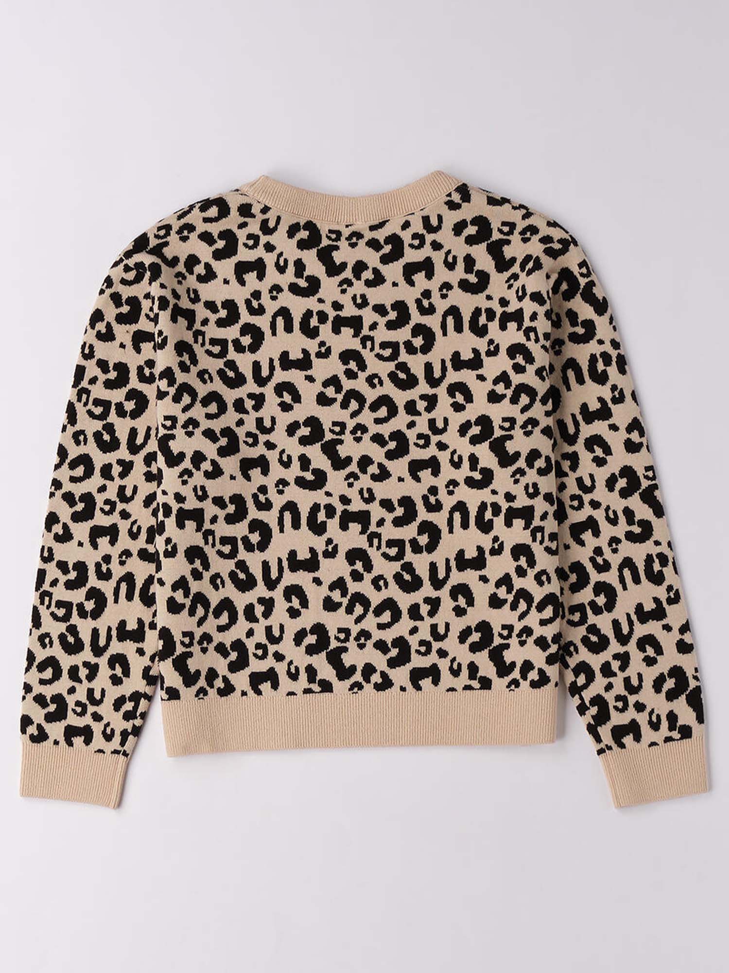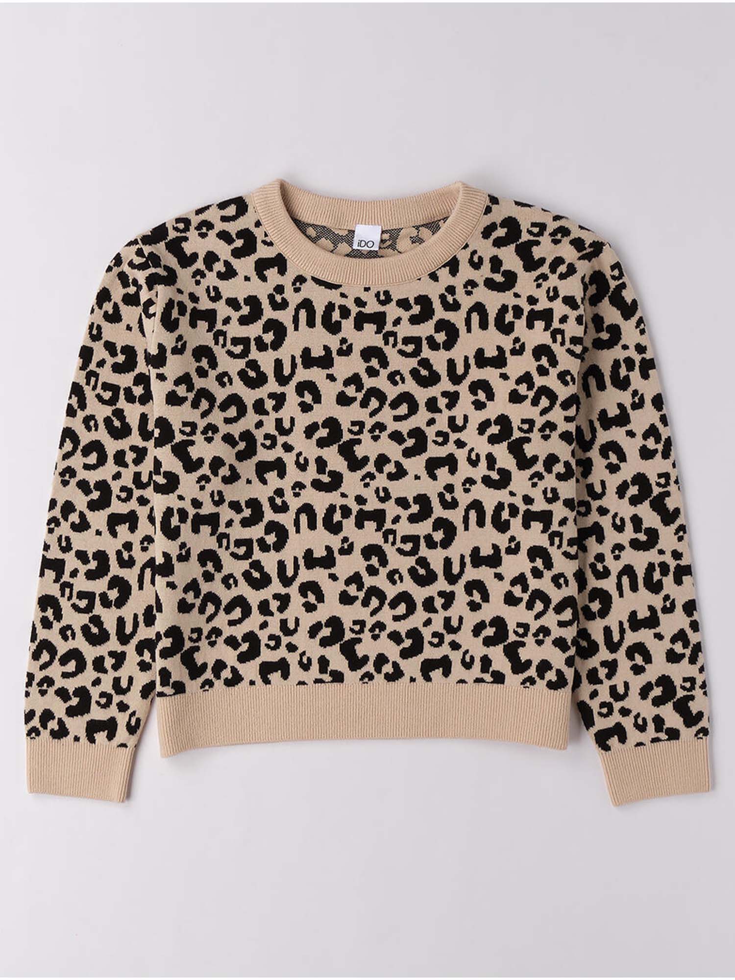 Maglioncino per bambina iDO realizzato in morbido tricot 100% cotone, caratterizzato da una raffinata fantasia animalier. Perfetto per la stagione Autunno/Inverno, è un capo caldo e confortevole, ideale per completare con stile i look di tutti i giorni.
