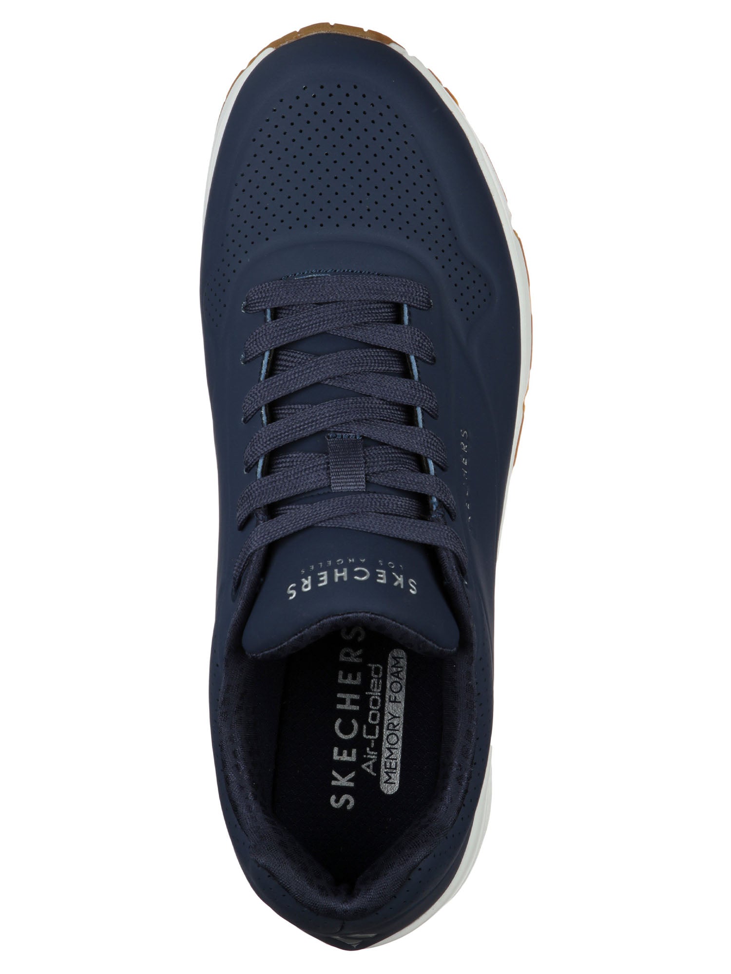 Skechers Uno Stand On Air – un classico reinventa il comfort e lo stile con questa sneaker da uomo dalla tomaia in tessuto sintetico traforato blu navy.