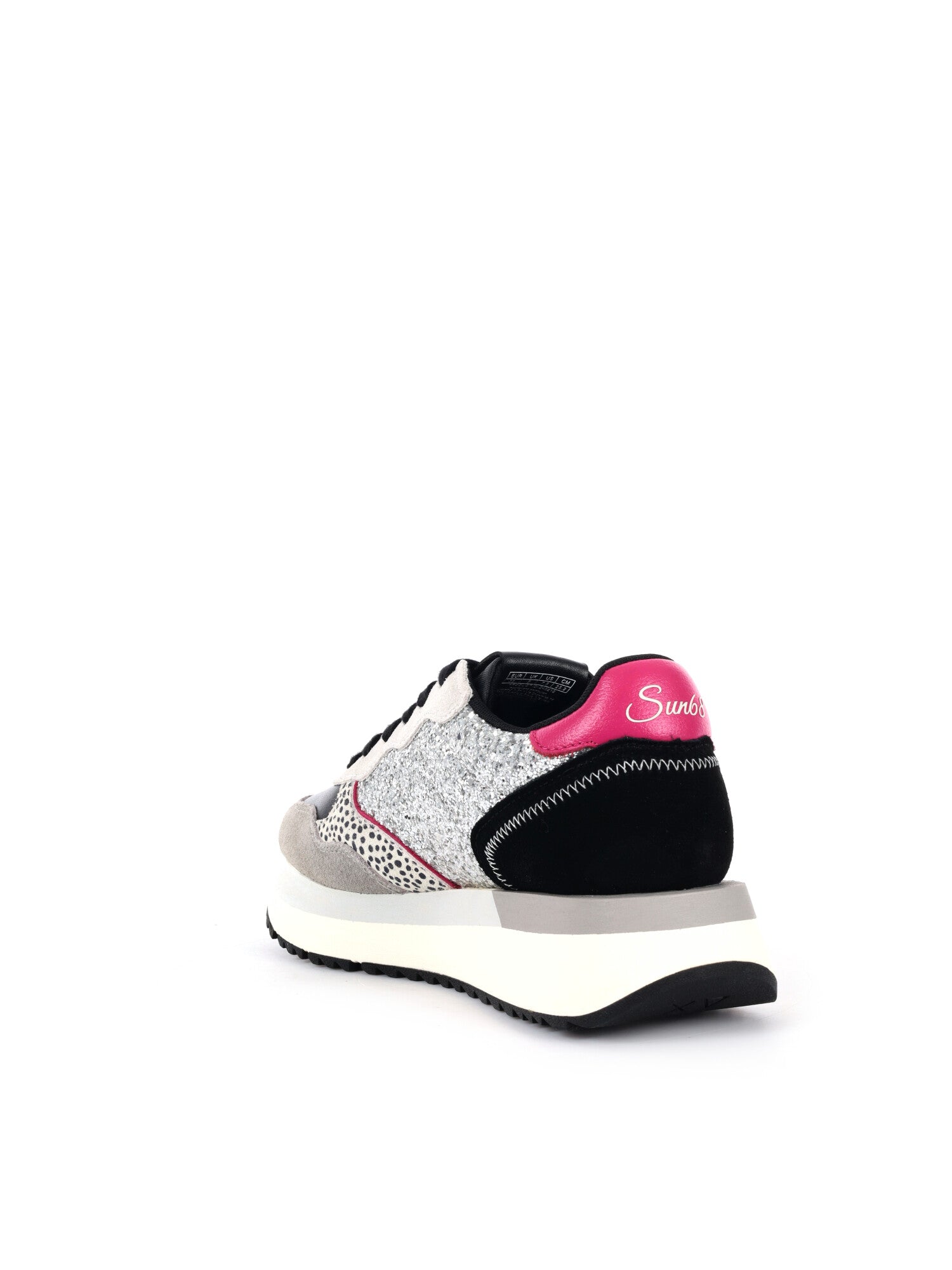 La sneaker Sun68 Big Ally Glitter da donna è un’interpretazione moderna dello stile running, impreziosita da inserti laterali tempestati di glitter per un effetto luminoso e raffinato. Parte della nuova collezione autunno/inverno, è realizzata in una combinazione di similpelle e suede, questa scarpa unisce funzionalità e carattere con dettagli logati che definiscono l’identità del brand. La chiusura con lacci consente una calzata regolabile, mentre la fodera in micro mesh garantisce traspirazione e comfort anche nelle giornate più intense. La suola platform in phylon e il battistrada in gomma offrono supporto, leggerezza e stabilità su ogni superficie.