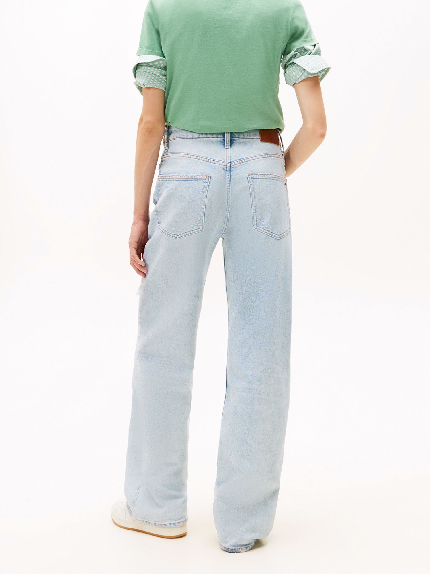 Realizzato in denim non stretch, il MIA offre una struttura solida e genuina che richiama i jeans d’altri tempi, reinterpretata in chiave contemporanea e femminile. La vita alta valorizza la silhouette, mentre la gamba dritta e morbida garantisce libertà di movimento e un look sempre rilassato ma curato nei dettagli. Il design è completato da una chiusura con zip e bottone frontale e dalle classiche cinque tasche, simbolo dello stile autentico firmato Tommy Jeans.