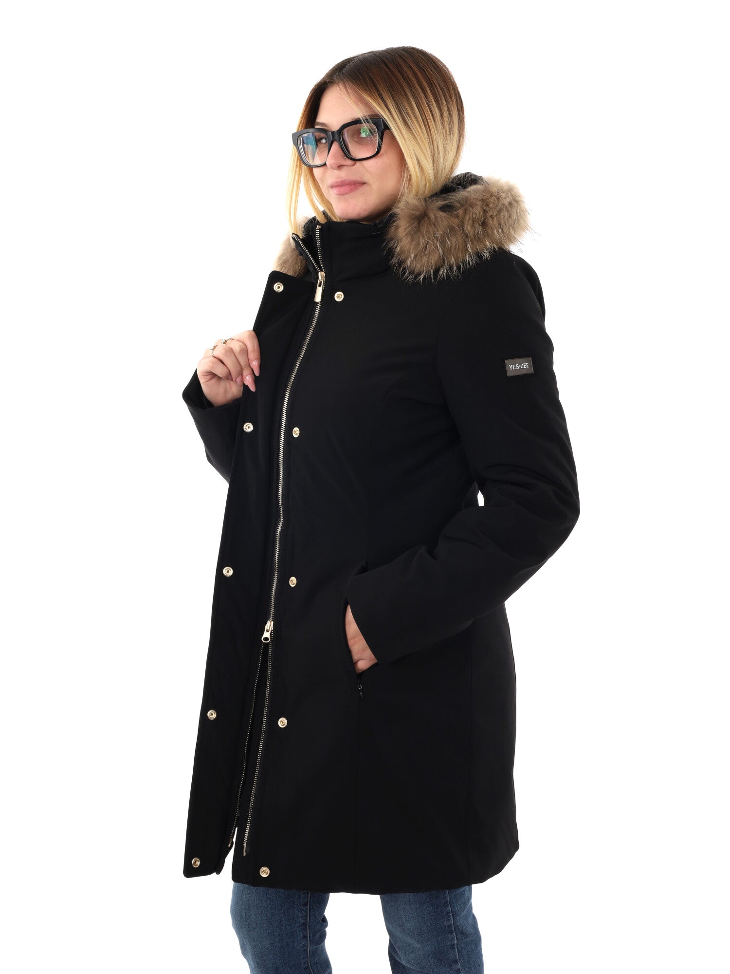 GIACCONE IDROREPELLENTE CON CAPPUCCIO YES ZEE DA DONNA NERO