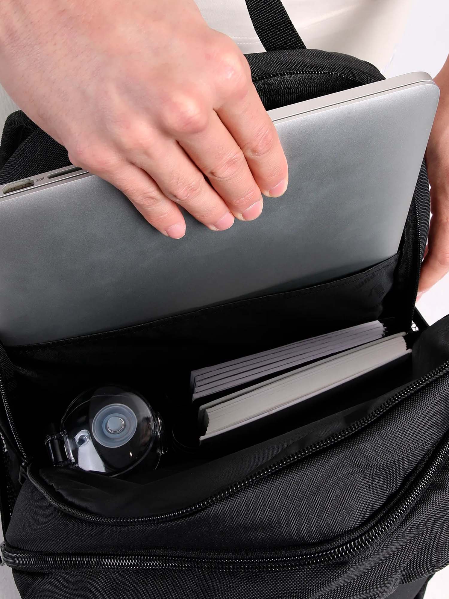 Completano il design le due tasche laterali in rete, ideali per bottiglie o ombrelli, e una manica interna imbottita, pensata per proteggere dispositivi e accessori delicati. Gli spallacci regolabili e imbottiti garantiscono una vestibilità comoda anche durante l’uso prolungato.