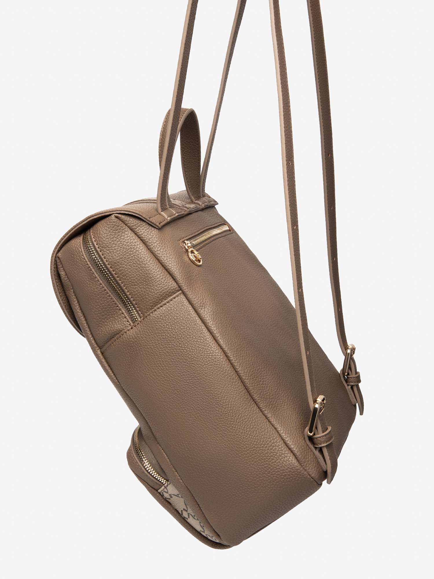 Realizzato in pelle effetto martellato, questo zaino si distingue per il suo design semplice ma raffinato, impreziosito dal logo in rilievo sul davanti. Un accessorio versatile e di tendenza, perfetto per completare i tuoi look stagionali. La chiusura principale con zip e patta con clip garantisce massima sicurezza, mentre l’interno, completamente foderato, è organizzato con una tasca con zip e una tasca aperta, ideali per tenere in ordine gli oggetti di uso quotidiano.